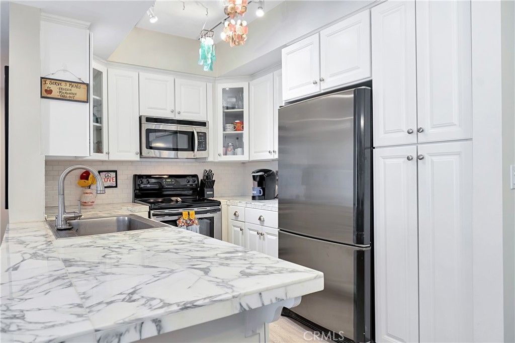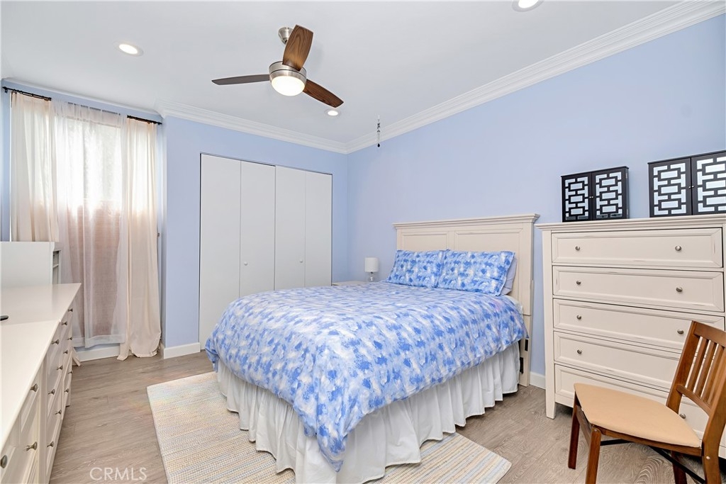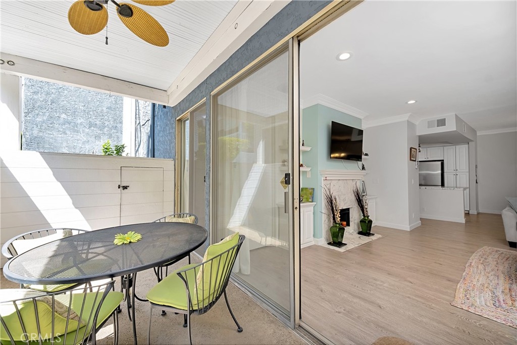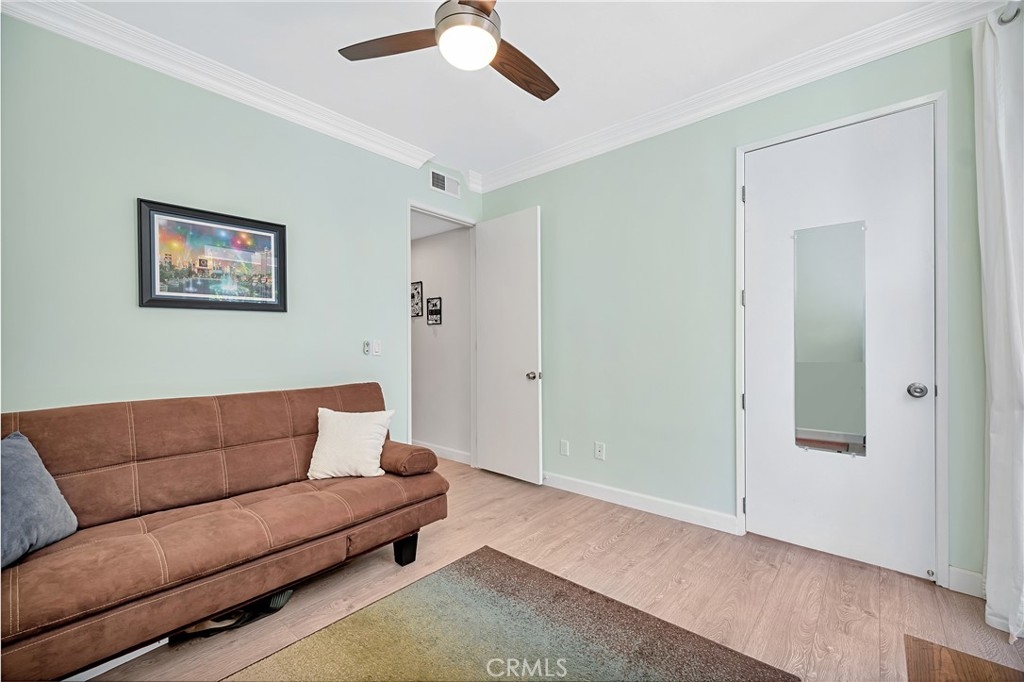 Super cute condo in Encino. Assessor shows 1 bedroom and 2 bathrooms, but the extra room is an easily made bedroom/den/office. It has been recently updated with laminate floors throughout, and penny round tile in both bathrooms, fresh paint and recessed lighting. Both bedrooms have ceiling fans for those warm Valley days, as well as a fan in the covered patio. Crown moulding throughout, with plenty of space to entertain in the open kitchen/dining/living areas. The primary bathroom has a double vanity and a huge walk-in shower that is separate from the bathtub. The second bath is a half bath. There is tons of closet space. Stackable washer/dryer in the unit. Large counter space in the kitchen excellent for food preparing or neatly putting your delivered food. The gas has been capped on the fireplace and is for decorative use only. There are 2 side-by-side parking spaces in the garage with a storage area, as well. The property is well kept and secure. A key is needed to enter all areas, including the pool, garage, and recreation room.