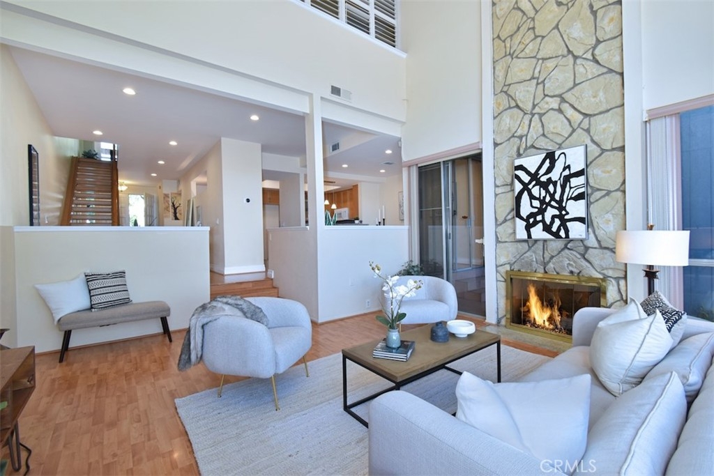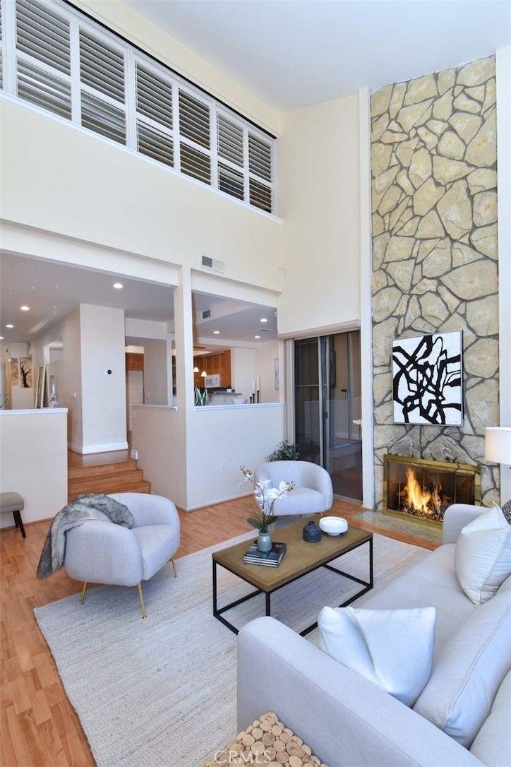 Spacious & secure, this charming Encino condo is one of the largest units in this beautiful gated community. Ideally situated with no neighbors above or below, this property features floor to ceiling windows in the living room providing an abundance of natural light. Enjoy your meals in this bright kitchen with granite counters and breakfast bar or in the adjacent dining room. One convenient bedroom and full bathroom complete the lower level. Upstairs leads to the spacious primary suite with vaulted ceilings, walk-in closet, private balcony and a full en-suite bathroom with jacuzzi tub. One additional bedroom with en-suite bathroom is upstairs along with the included washer & dryer. Amenities in the complex include a pool, spa, secured storage, earthquake insurance and dedicated parking with close proximity to restaurants on Ventura Boulevard, Trader Joes and the 101 Freeway.