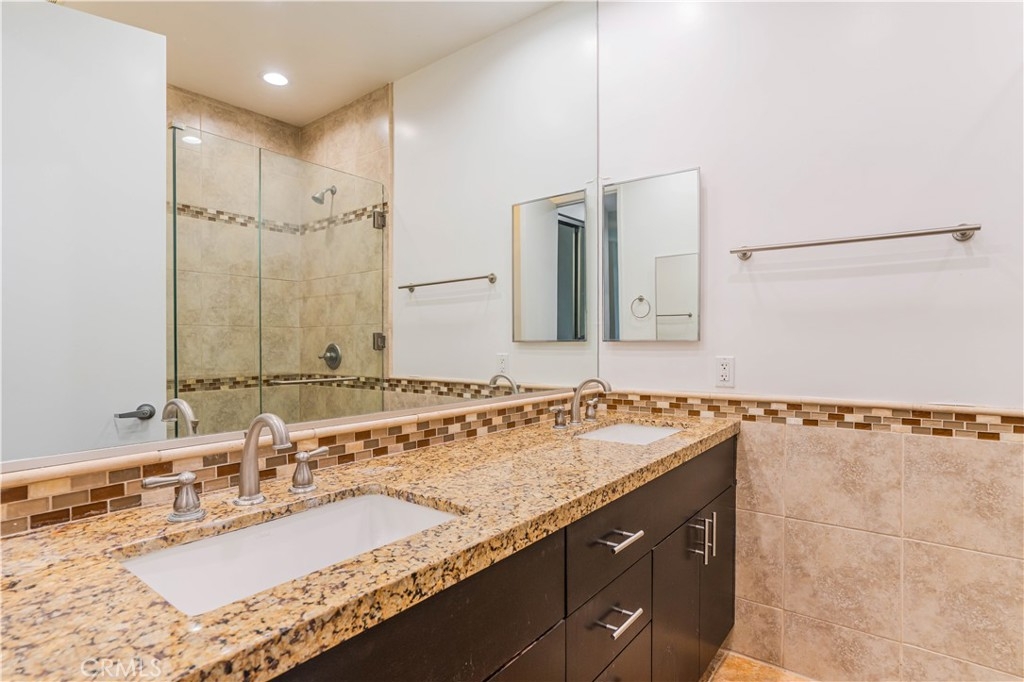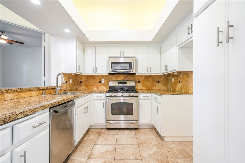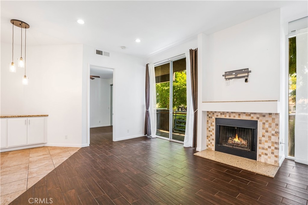 Enjoy the best of Encino living in this stylish 2-bed, 2-bath condo. Set within an architecturally distinctive building with rare turnover, this residence blends modern design, comfort, and convenience. This unit features an open-concept layout that welcomes you with soaring 10-foot ceilings, abundant natural light, recessed lights, and tile floors throughout. A cozy gas fireplace adds warmth and charm, while the functional kitchen features quartz countertops, a tiled stone backsplash, stainless steel appliances, and ample cabinetry—ideal for daily living and entertaining. Spacious en-suite bedrooms are positioned on opposite ends for optimal privacy, complemented by a serene private balcony. Additional features include an in-unit stackable washer and dryer, tandem spaces in a secure subterranean garage, and convenient elevator access. Enjoy an array of community amenities such as a spa, sauna, fitness center, barbecue patio, in-ground jacuzzi, and covered guest parking. Situated just a short walk from the shops and restaurants of Ventura Boulevard and only minutes from the 101 and 405 freeways, this pet-friendly condo offers the perfect blend of urban convenience and laid-back living.