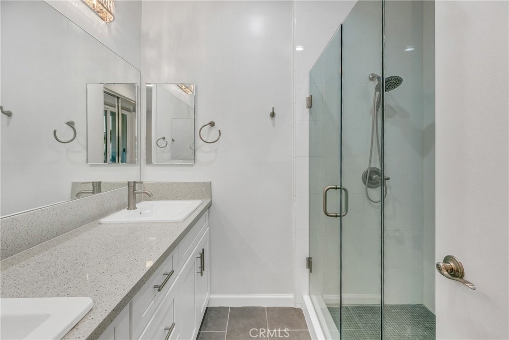 FULLY UPGRADED OPEN FLOOR PLAN SINGLE-STORY MODERN 2 BED 2 BATHS CONDO! Step inside and will immediately notice all the upgrades and finishes that are tastefully done. The upgrades included are luxury vinyl wood flooring throughout, recessed lighting, modern wall color tone paint, upgraded dual pane windows and sliding glass doors, and sleep modern roller shades. The main living space showcases floor to near ceiling glass windows and sliders that allow plenty of natural light inside, with direct access to your outdoor patio space, perfect when entertaining guests. Central fireplace with mantel, perfect to cozy up to on those cold evenings. The kitchen is upgraded with a quartz countertop, stainless steel appliances, a built-in microwave, a modern tiled backsplash, and sleek white cabinets with plenty of storage space. There are 2 separate master suites with 2 upgraded bathrooms. One bedroom has direct access to the connected outdoor patio space. The other primary bedroom includes dual closings and dual vanities inside the bathroom with a modern stand-alone shower. Stackable washer and dryer laundry hookups are located inside the unit. Two assigned parking spaces are included with additional guest parking. Low HOA dues which include water and trash. This small and private community features only 28 units. Amenities for the building include a spa, bbq area, gym, and recreation room. Conveniently located near many shops, restaurants, markets, parks, and a block away from Ventura Blvd. Easy access to the 101 and 405 Freeways.