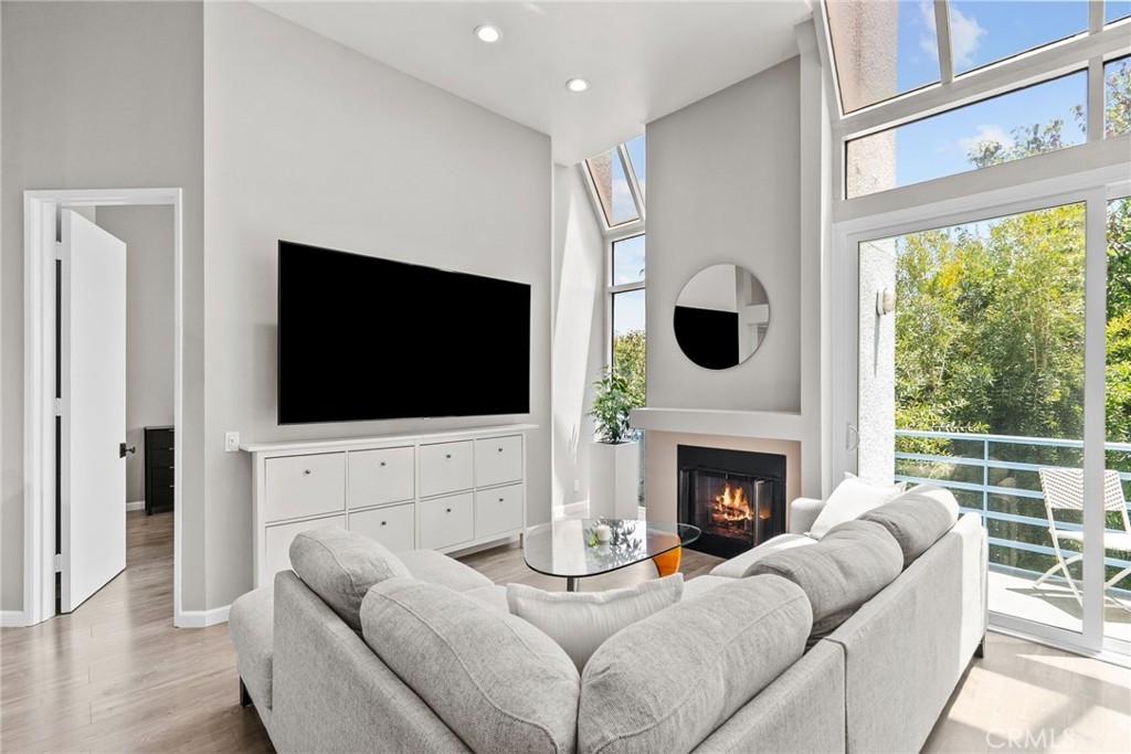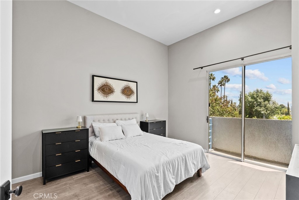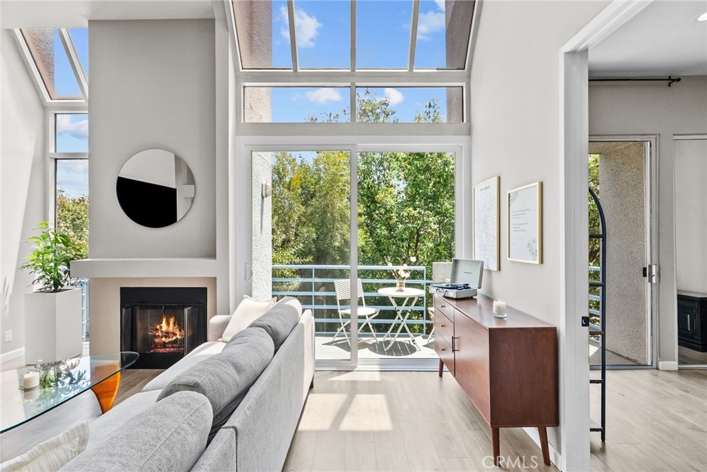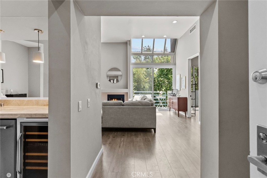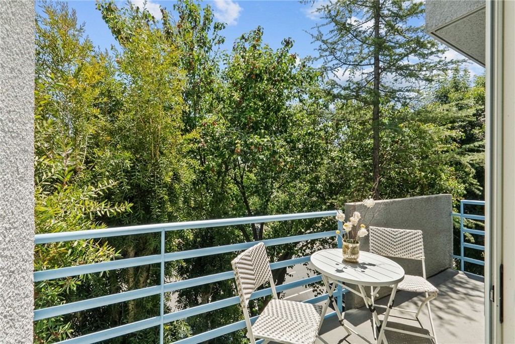 Tucked away among multi-million dollar homes with Amestoy Estates in your backyard, this top-floor 2-bedroom, 2-bath condo in the heart of Encino offers 956 square feet of stylish living and exudes pride of ownership with tasteful touches throughout. The east-facing unit with large windows and extra tall ceilings fills the home with natural light, complementing the open floor plan, cozy gas-burning fireplace, and an upgraded kitchen featuring high-end appliances, a wine fridge, smart-home features, and recessed lighting. The spacious bedrooms are thoughtfully positioned on opposite sides for privacy, while a private balcony with a new sliding door creates a peaceful haven. Additional highlights include an in-unit stackable high-end washer and dryer, elevator access, two side-by-side secured parking spaces, and private storage. The well-maintained, tight-knit building of only 28 units offers low HOA fees, a spa, sauna, fitness-recreation center, BBQ area, 24-hour controlled access, and ample guest parking. Conveniently located near award-winning schools and within walking distance to Ventura Boulevard, Encino Commons, Equinox gym, fine dining, and the finest shopping with easy access to the 101 and 405 freeways, this condo confidently meets every expectation for buyers seeking functionality, elegance, and convenience.