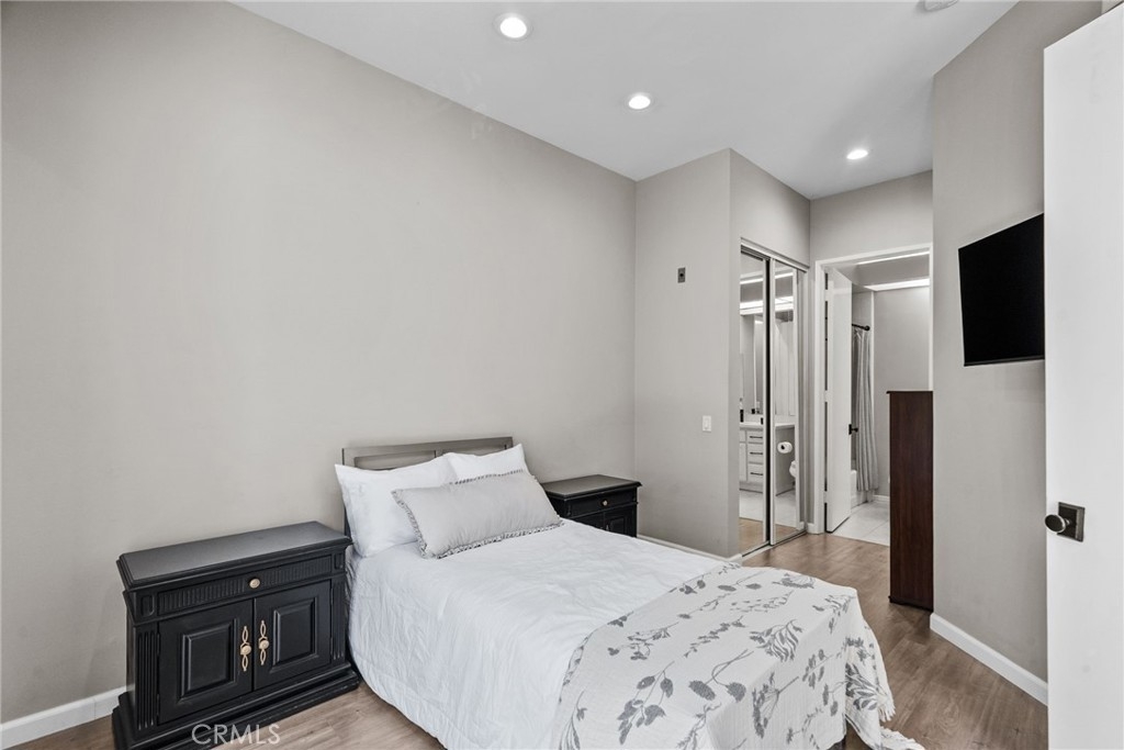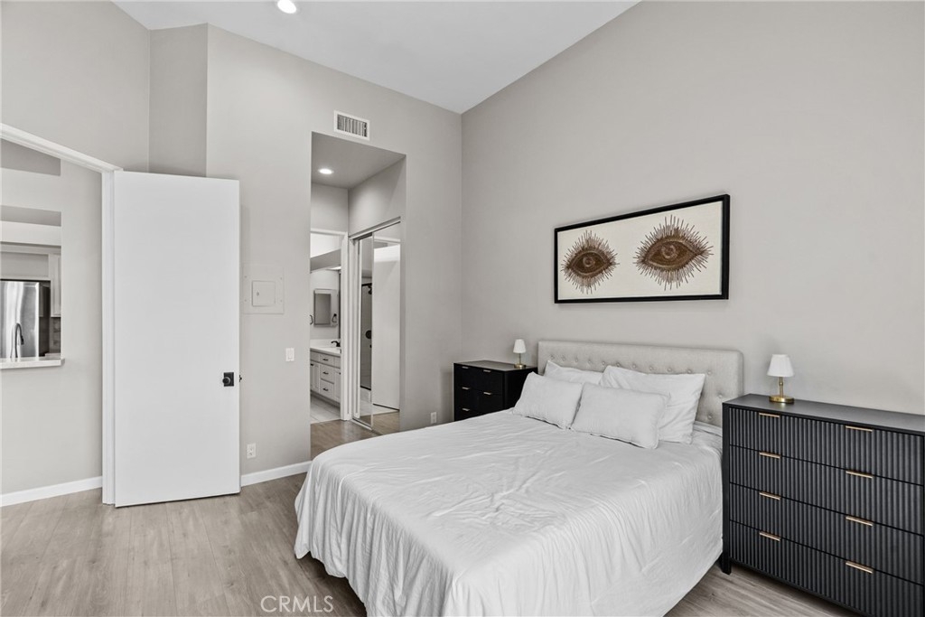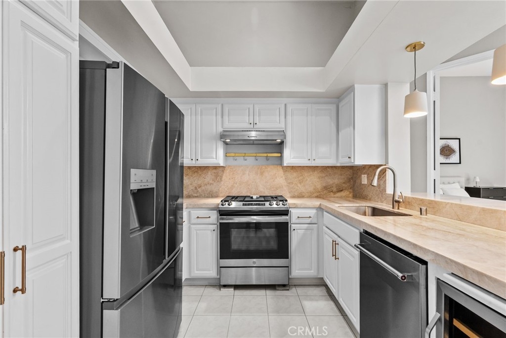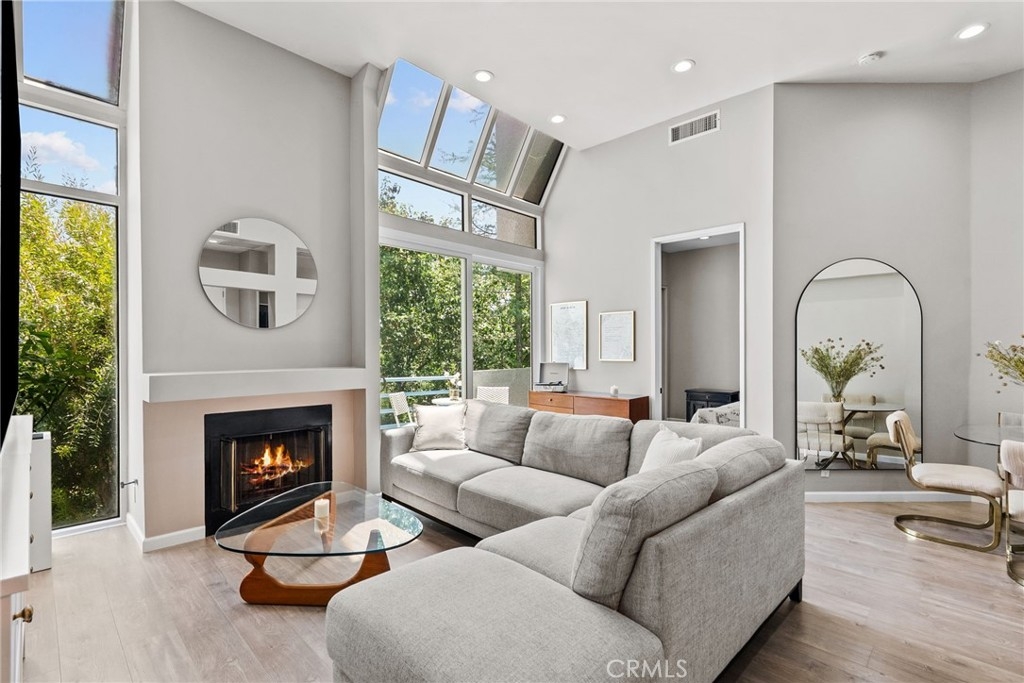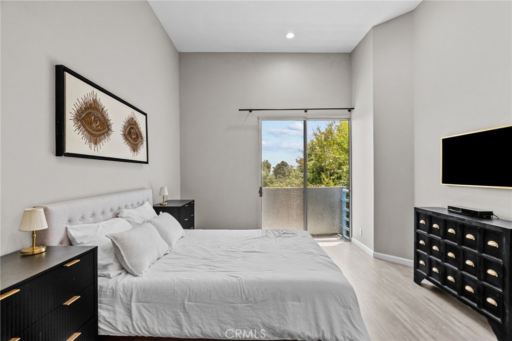 Tucked away among multi-million dollar homes with Amestoy Estates in your backyard, this top-floor 2-bedroom, 2-bath condo in the heart of Encino offers 956 square feet of stylish living and exudes pride of ownership with tasteful touches throughout. The east-facing unit with large windows and extra tall ceilings fills the home with natural light, complementing the open floor plan, cozy gas-burning fireplace, and an upgraded kitchen featuring high-end appliances, a wine fridge, smart-home features, and recessed lighting. The spacious bedrooms are thoughtfully positioned on opposite sides for privacy, while a private balcony with a new sliding door creates a peaceful haven. Additional highlights include an in-unit stackable high-end washer and dryer, elevator access, two side-by-side secured parking spaces, and private storage. The well-maintained, tight-knit building of only 28 units offers low HOA fees, a spa, sauna, fitness-recreation center, BBQ area, 24-hour controlled access, and ample guest parking. Conveniently located near award-winning schools and within walking distance to Ventura Boulevard, Encino Commons, Equinox gym, fine dining, and the finest shopping with easy access to the 101 and 405 freeways, this condo confidently meets every expectation for buyers seeking functionality, elegance, and convenience.