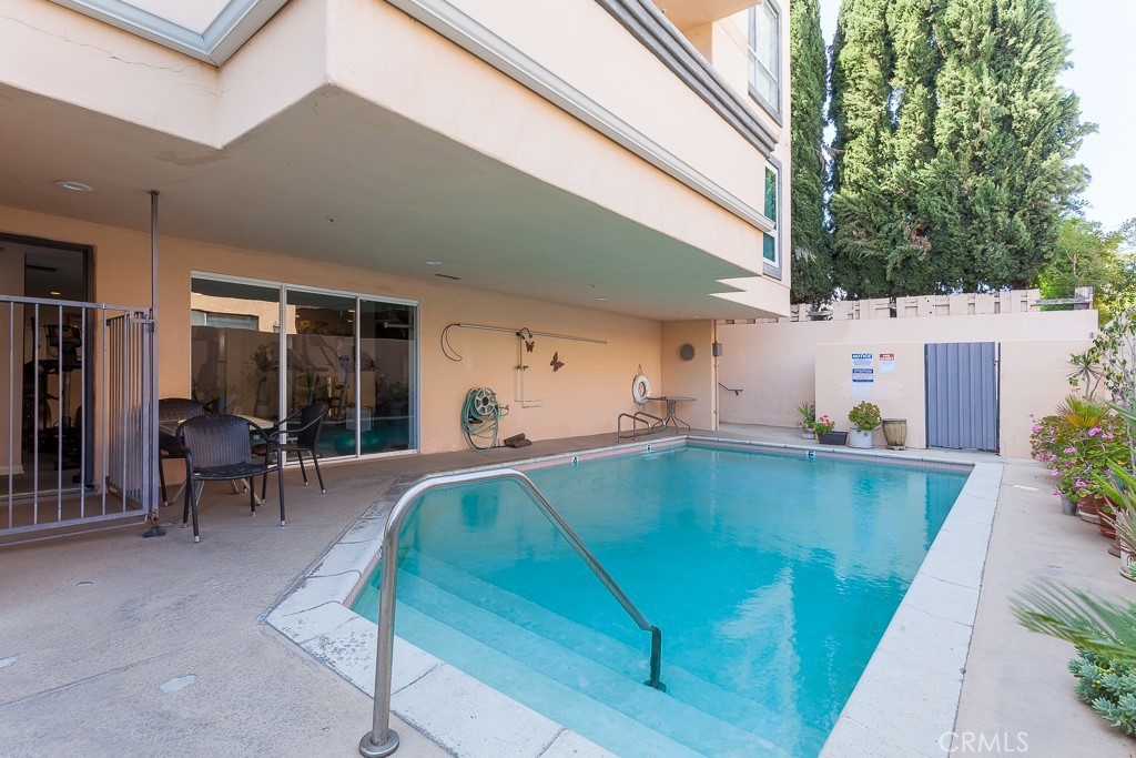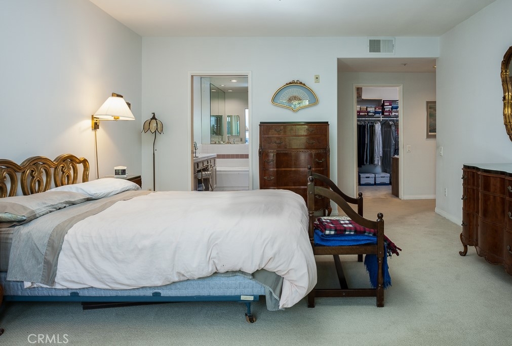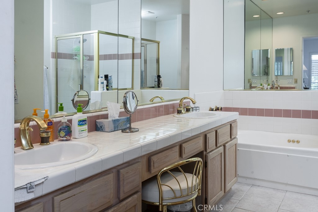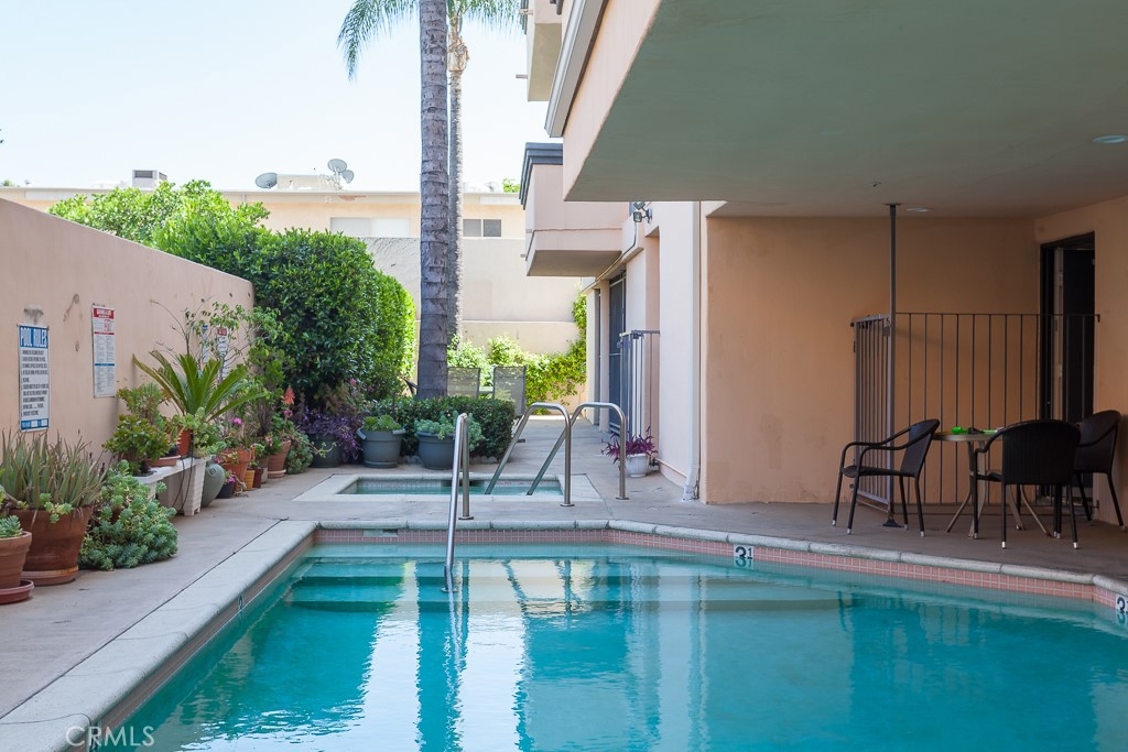This lovely condo is located within walking distance of Ventura Blvd. restaurants and shopping and features modern design touches such as the architectural tray ceilings in the dining and living rooms, the “wall of storage” in the living room and the plantation shutters throughout. The open design begins in the living room made ideal for entertaining or relaxing in front of a fireplace with a marble hearth along with a conveniently located guest bathroom. The adjoining kitchen features tile counters, plenty of cabinet space and opens to a sizable dining room. There are two suite bedrooms! The primary bedroom becomes a hideaway with another cozy fireplace, walk-in closet and a private bath with dual sinks, jacuzzi tub and a separate shower. Another good-size junior suite with a private bath with a shower ensure ample private living space. The laundry room includes many cabinets for extra storage. There’s even a small patio off the living room to sit and enjoy a cup of something before or after a long day!