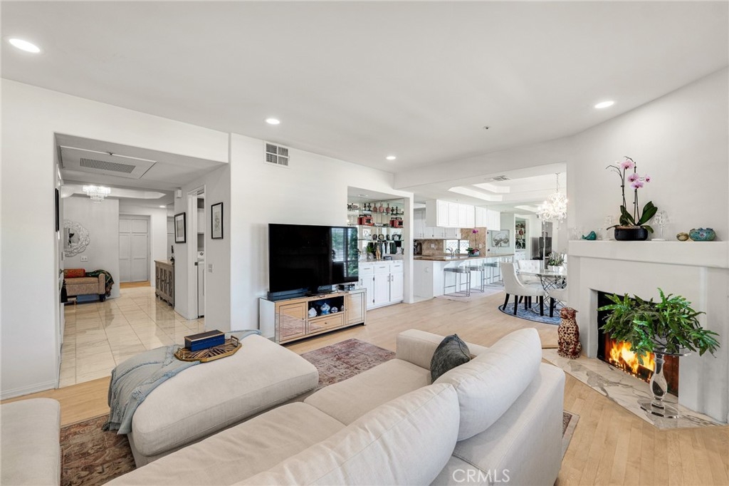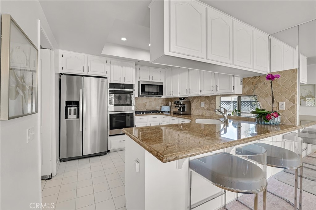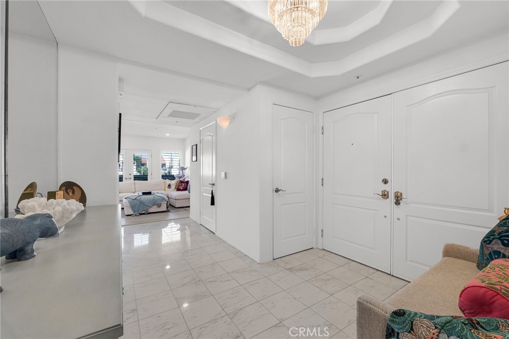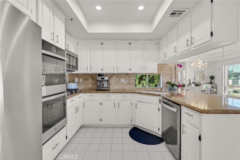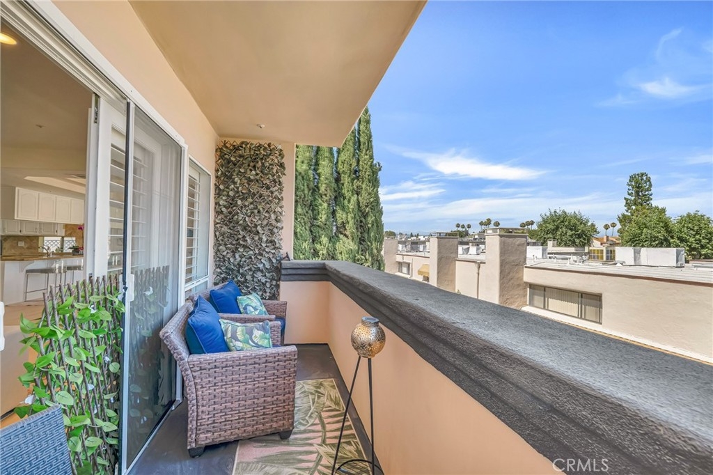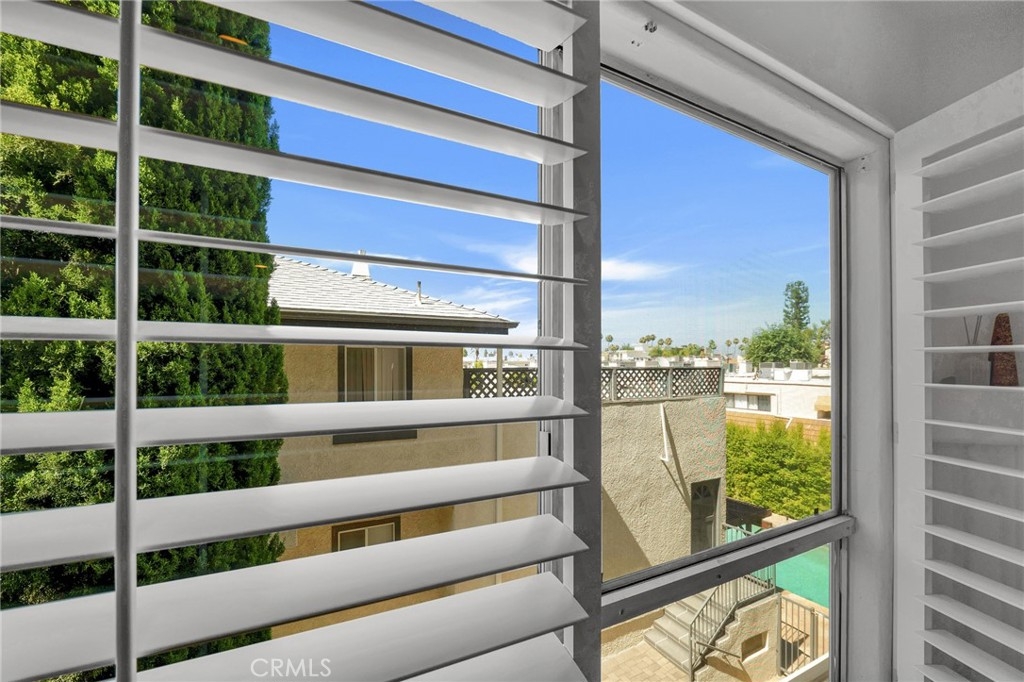 This rare rear corner unit in coveted San Tropez West Villas of Encino is a gorgeous oasis & combines privacy, pristine panoramic east-facing views & refined interior features across 2 en-suite bedrooms, 2.5 baths, & 1,538 sq ft of luxurious living space. Unlike many other units w/ balconies facing neighboring bldgs, this home boasts a spacious balcony w/ sweeping, sunrise views that flood the interior w/ natural light. Large windows w/ new plantation shutters & recessed lighting are featured throughout, enhancing the bright, airy ambiance. Double-door entry opens to an elegant foyer w/ tray ceiling & chic chandelier, leading into a bright, open-concept living & dining area. Living room offers a corner fireplace, wet bar, & French doors to a private view balcony. Adjoining dining space features 2nd tray ceiling w/ elegant chandelier, & mirrored accent wall amplifying natural light & creating a sense of even more grandeur. Kitchen opens to the dining area via a breakfast bar & features white cabinetry, granite countertops, tumbled marble backsplash, & newly upgraded stainless-steel appliances, including a gas cooktop, microwave, double convection oven, & dishwasher. A hallway off the kitchen leads to a dedicated laundry area (washer & dryer included) w/ spacious pantry & storage closet & circles back to the foyer w/ an elegant powder bath convenient for guests. Both spacious bedrooms are privately positioned at the back of the unit w/ stunning views. Oversized primary suite includes its own fireplace, walk-in closet, & a luxurious en-suite bath w/ dual-sink vanity, jetted soaking tub, & separate shower. Secondary suite offers mirrored closet doors & ¾ en-suite bath. 2-car tandem parking in a secure subterranean garage & access to resort-style amenities such as an inground pool & spa, fitness center w/ sauna, secure building entry, & elevator access. HOA dues cover water, trash, basic cable, & earthquake insurance. Perfectly situated just moments from trendy Ventura Boulevard, this home offers easy access to vibrant dining & shopping—including spots like Esso Mediterranean Bistro, Vino Wine & Tapas Room, Coral Tree Café, Trader Joe’s, Gelson’s & Target—as well as nearby recreation like the Sepulveda Basin Recreation Area, Balboa Golf Course, & Los Encinos State Historic Park. Commuters will appreciate proximity to the 101 & 405 freeways, & families benefit from access to highly rated schools such as Nestle Avenue Charter Elementary & Portola Middle School.