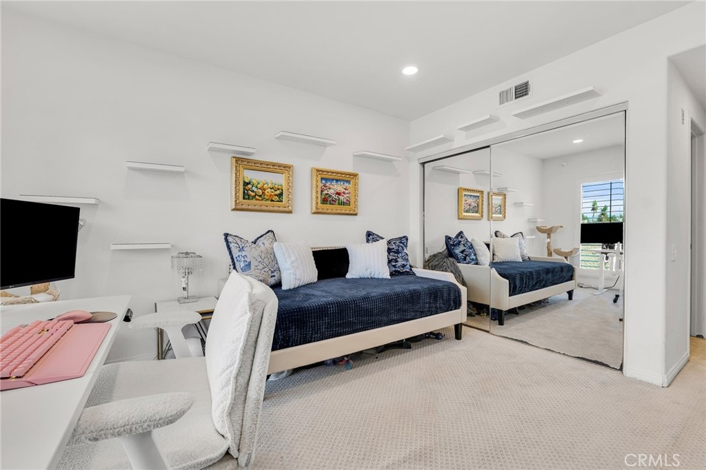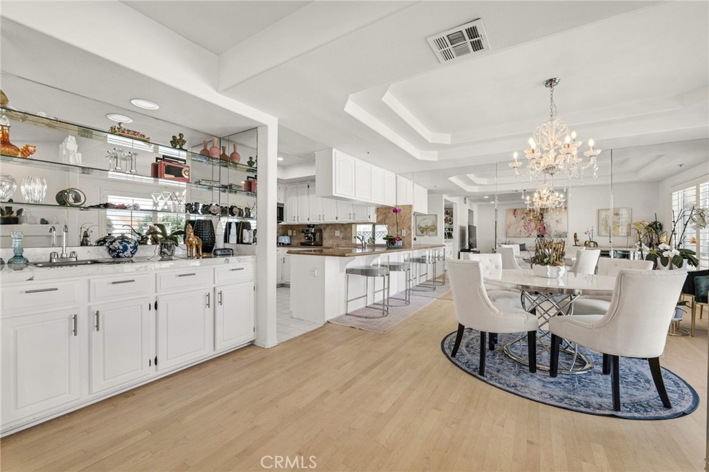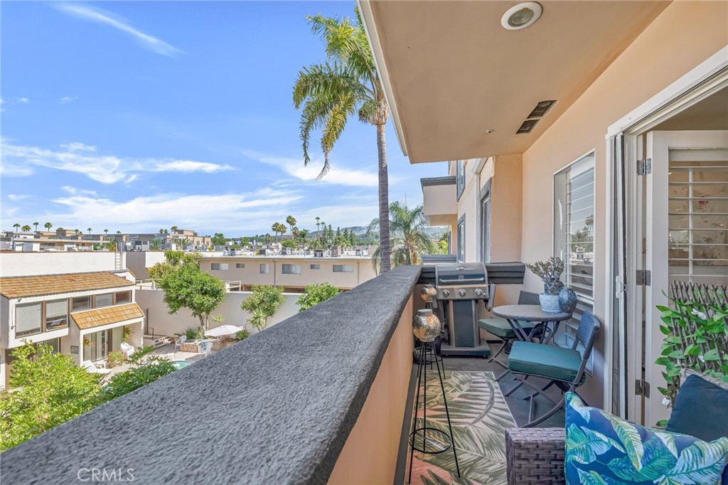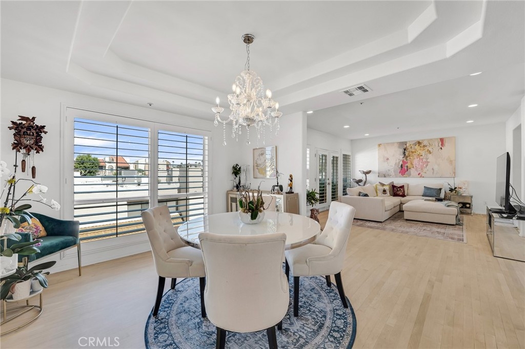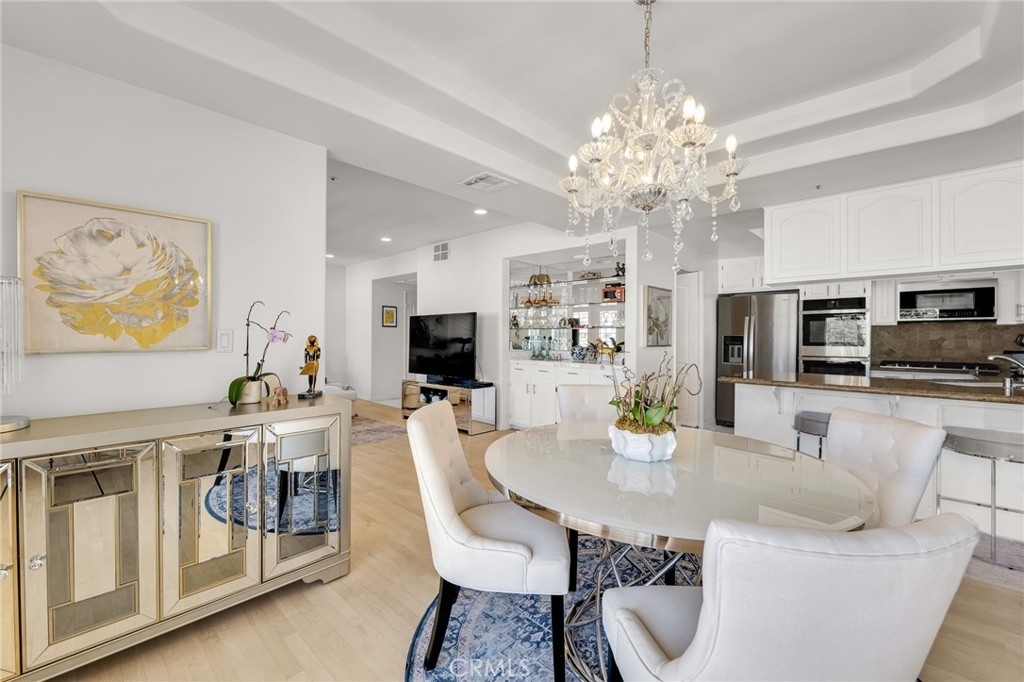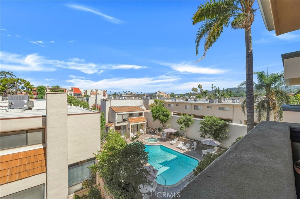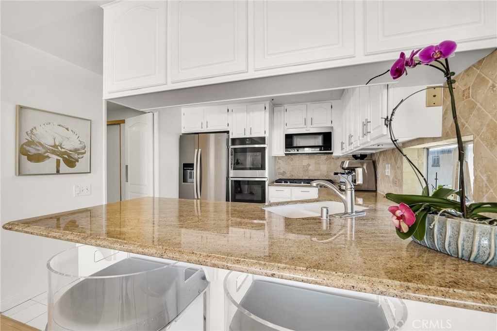 This rare rear corner unit in coveted San Tropez West Villas of Encino is a gorgeous oasis & combines privacy, pristine panoramic east-facing views & refined interior features across 2 en-suite bedrooms, 2.5 baths, & 1,538 sq ft of luxurious living space. Unlike many other units w/ balconies facing neighboring bldgs, this home boasts a spacious balcony w/ sweeping, sunrise views that flood the interior w/ natural light. Large windows w/ new plantation shutters & recessed lighting are featured throughout, enhancing the bright, airy ambiance. Double-door entry opens to an elegant foyer w/ tray ceiling & chic chandelier, leading into a bright, open-concept living & dining area. Living room offers a corner fireplace, wet bar, & French doors to a private view balcony. Adjoining dining space features 2nd tray ceiling w/ elegant chandelier, & mirrored accent wall amplifying natural light & creating a sense of even more grandeur. Kitchen opens to the dining area via a breakfast bar & features white cabinetry, granite countertops, tumbled marble backsplash, & newly upgraded stainless-steel appliances, including a gas cooktop, microwave, double convection oven, & dishwasher. A hallway off the kitchen leads to a dedicated laundry area (washer & dryer included) w/ spacious pantry & storage closet & circles back to the foyer w/ an elegant powder bath convenient for guests. Both spacious bedrooms are privately positioned at the back of the unit w/ stunning views. Oversized primary suite includes its own fireplace, walk-in closet, & a luxurious en-suite bath w/ dual-sink vanity, jetted soaking tub, & separate shower. Secondary suite offers mirrored closet doors & ¾ en-suite bath. 2-car tandem parking in a secure subterranean garage & access to resort-style amenities such as an inground pool & spa, fitness center w/ sauna, secure building entry, & elevator access. HOA dues cover water, trash, basic cable, & earthquake insurance. Perfectly situated just moments from trendy Ventura Boulevard, this home offers easy access to vibrant dining & shopping—including spots like Esso Mediterranean Bistro, Vino Wine & Tapas Room, Coral Tree Café, Trader Joe’s, Gelson’s & Target—as well as nearby recreation like the Sepulveda Basin Recreation Area, Balboa Golf Course, & Los Encinos State Historic Park. Commuters will appreciate proximity to the 101 & 405 freeways, & families benefit from access to highly rated schools such as Nestle Avenue Charter Elementary & Portola Middle School.