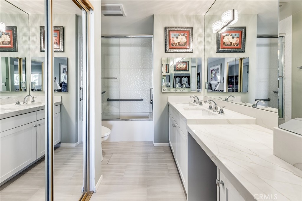 Stunning Recently Remodeled Prime Encino Townhome! Your buyers will love this beautiful, gated complex! The elegant living room welcomes you with soaring ceilings, marble tile entry and fireplace, recessed lighting and opens to a large peaceful patio surrounded by lush landscaping. The dining area has hardwood floors, 2 separate built ins and eating areas. Can flex to a media area as well as dining. Kitchen is bright with fresh white cabinets, glass uppers, quartz countertops and stainless appliances including a double oven, cooktop, microwave, beverage cooler. and refrigerator. Powder room on main level. The Master has included the 4th bedroom to create an incredible master suite that opens to a breezeway overlooking tall trees and blue skies! The master bath offers two sinks with expanded counter area, extensive mirrors, quartz countertops, tile floors and tub/shower with glass enclosure. The Hall bath has stall shower with handheld shower, beautiful tiling in shower and floors and quartz countertop. Ceiling fans in every bedroom. The 2-car attached garage has laundry and huge storage cabinets. The pool, jacuzzi, rec room and outdoor bbq are surrounded by meticulously groomed landscaping which boasts a vast array of tress and roses. Great access to shopping, restaurants, parks and the 101 Fwy.