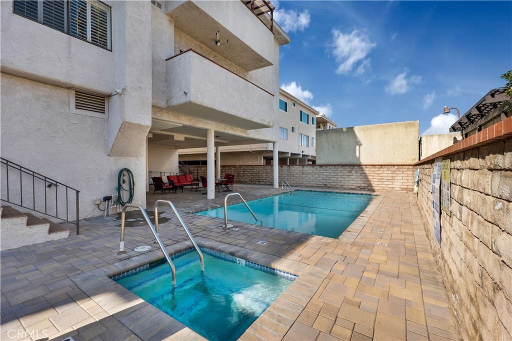 This desirable front facing corner unit in the Zelzah Avenue Condominiums has a great layout with two separated en-suite bedrooms, living room with balcony and fireplace, a den, and formal dining room. The kitchen has a sunny breakfast area, recessed lighting, and laminate floors. The master suite includes a walk-in closet, second closet, and bathroom with dual vanities, separate tub, and shower. There is a powder room, wet bar and washer and dryer area. Common area facilities include a pool, spa, sauna, and recreation room. Two tandem parking spaces and storage area in garage. Complex has ground level lobby and garage and two floors with 7 units on each floor. Only 14 units total. Great location near Ventura Boulevard with restaurants, supermarkets and houses of worship nearby.