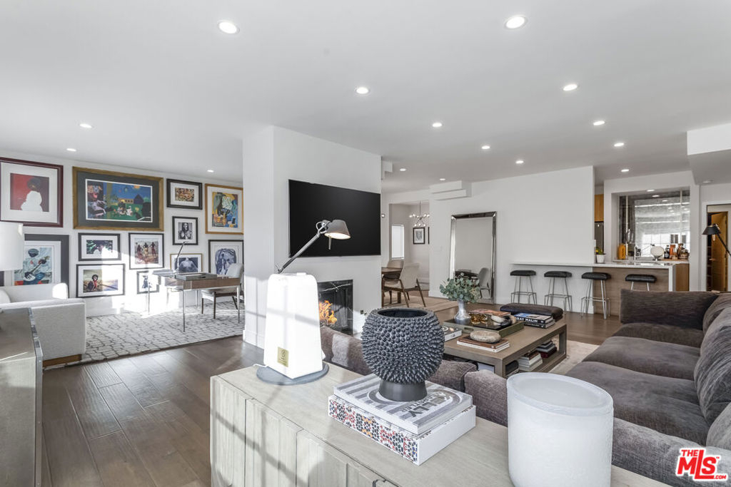 Located in Encino's prime Zelzah Avenue Condominiums, this front-facing 2BR/2BA 1,913 sq.ft. corner unit offers a sleek, modern design with a fully remodeled interior. Windows face West and North. The spacious layout includes a living room with a balcony and fireplace, a versatile den or office, and a formal dining area, wet bar, and a powder room for additional functionality. Wide-plank maple hardwood floors throughout enhance durability and elegance. The gourmet kitchen features Luca flat-panel European cabinetry with soft-close functionality, quartz countertops with a waterfall edge, and a sunny breakfast nook. The primary suite has a walk-in closet and bathroom with dual vanities, a freestanding tub, and a separate shower. A large guest room also has its own private bathroom with a tub/shower combo. Washer/dryer in-unit. The boutique building houses only 14 units, offering exclusivity and tranquility. Solid construction ensures a whisper-quiet living environment, with units ranging from 1,817 to 2,233 sq.ft. Residents enjoy access to amenities such as a pool, spa, sauna, and recreation room, as well as two tandem parking spaces and a storage area in the garage. Plenty of off-street guest parking, too (6 guest spaces on-site). Zelzah is not a "cut-through," nor it is a busy street. Conveniently located barely North of Ventura Boulevard, this property is within minutes of Gelson's, Trader Joe's, Target, restaurants, and all the area has to offer.