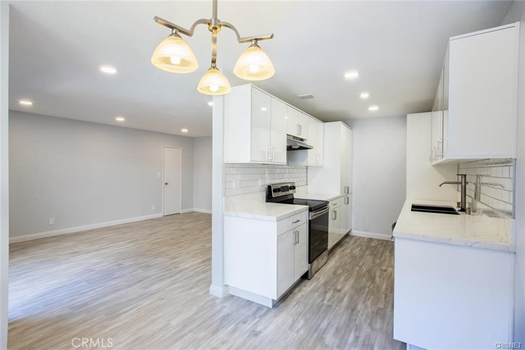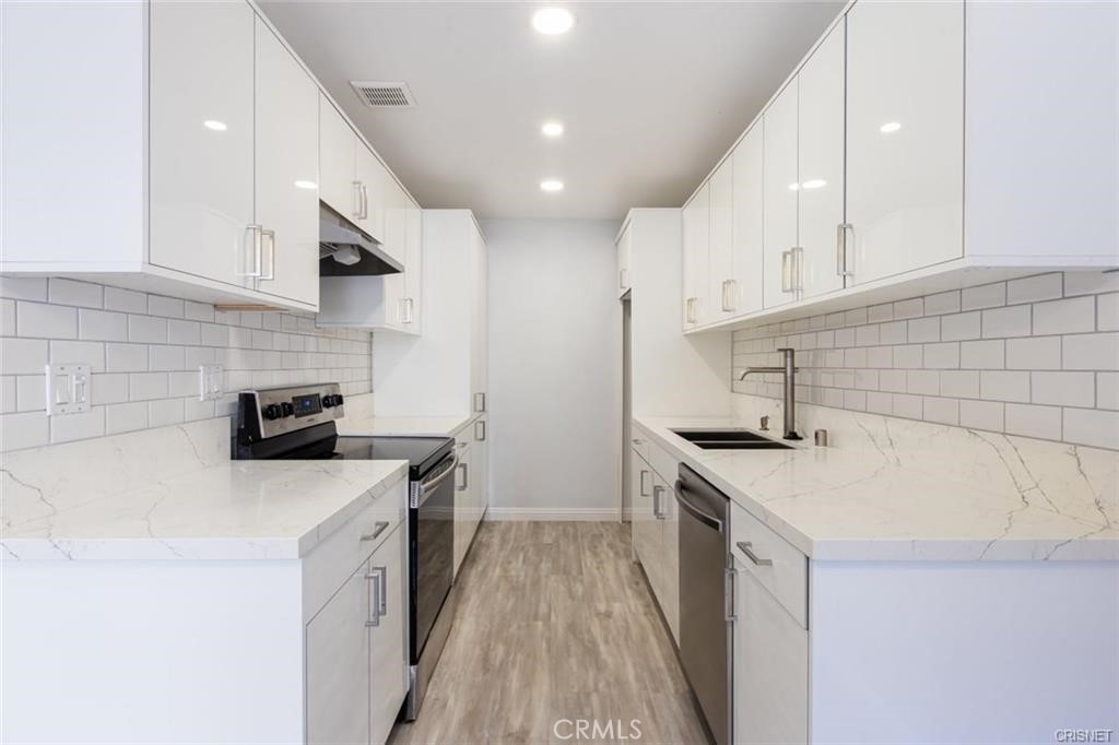 Trendy, modern, and NEW best highlights this COMPLETELY RENOVATED 2-bedroom, 2-bathroom, 958-SqFt GROUND FLOOR condo in Encino! Everything in this home is completely new and ready for enjoyment! Amazing waterproof engineered wood floors run through the unit and recessed lighting emphasizes the light airy feel of the living room that allows access onto the private patio space. The cozy dining nook includes a local view of the complex and is just off the kitchen. Into the kitchen, find a fresh space that includes Quartz countertops, white subway tile backsplash, glossy cabinetry, and new built-in appliances. Both bedrooms offer built-in closet storage with the main bedroom offering mirrored closet doors. The master bedroom has a walk-in closet plus ensuite bath with new tiled shower stall and modern vanity sink. The main bathroom, also completely new, mimics the sleek design of the master bath but with a shower/tub featuring beautiful tile. Fantastic opportunity to live right off Ventura Blvd and close by to Gelson’s Market, Vons, Trader Joe’s, various cafes, restaurants, shops and much more!