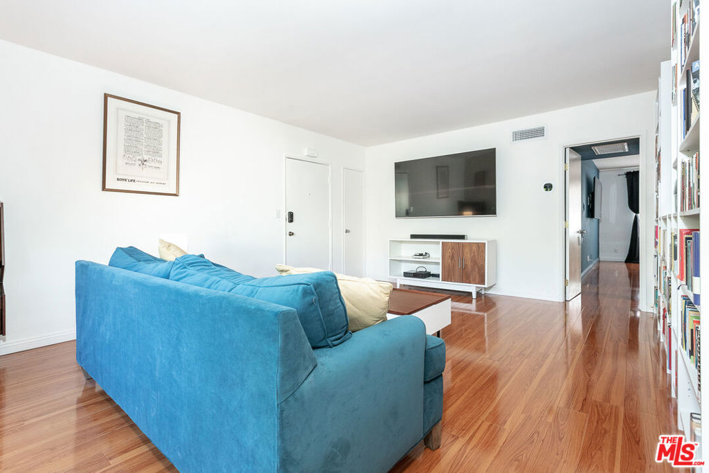 Newly re-designed and impeccably maintained, you'll fall in love with this upper one bedroom unit as soon as you walk through the door. The floor plan is open and spacious-- a large living room filled with soft natural light, bedroom with walk-in closet and a kitchen that has plenty of storage, room for a table and stainless steel appliances. The bathroom has been newly renovated as well with a Carrara marble floor, American Standard soaking tub, new vanity and Moen chrome fixtures. There's also a private balcony overlooking lush greenery, the perfect spot to mediate or enjoy your morning coffee. Other upgrades: new water heater, new HVAC, new valves/supply lines and new sheetrock ceiling. Amenities within the building include secured access, pool, gym, barbecue and laundry. One parking spot. Close to all of the restaurants and shops on Ventura. Get ready for your new home. This is the one you've been waiting for.