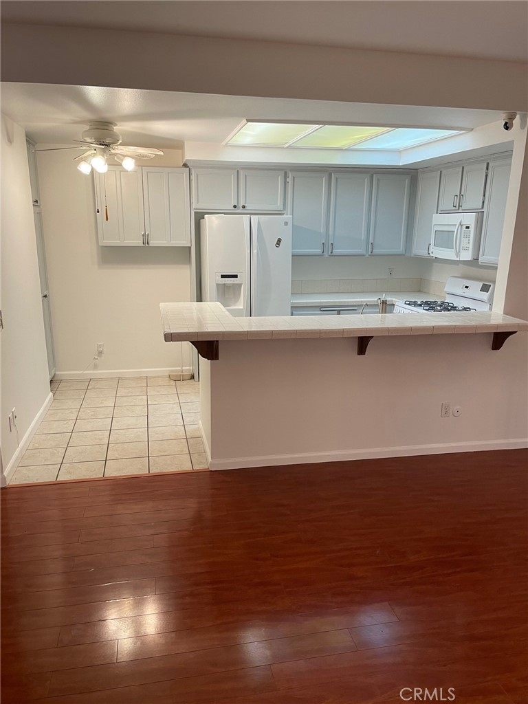 Gorgeous and Charming Condo featuring 2 bedrooms and 2 baths in this beautiful south-after location. Cozy back porch patio garden that leads you into the sliding door to living room with a fireplace and the dinning area. Loads of windows to bring in plenty of natural light. A beautiful kitchen with a tile counter tops, refrigerator, Free Standing oven, Dish Washer all in Elegant White. Beautifully installed Wood Flooring. Master bedroom with Walk-In Closet and Ensuite Master Bathroom with Shower. One more nicely sized Bedroom, a full bath with Tub in the Hallway. Washer and Dryer Hookups. Central Heating and Air. 2 car garage. Conveniently located with short distance to fine dinning and shopping, Park and much more makes this home a must see! close to 101 Ventura freeway.