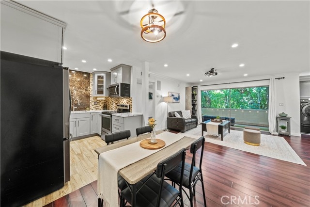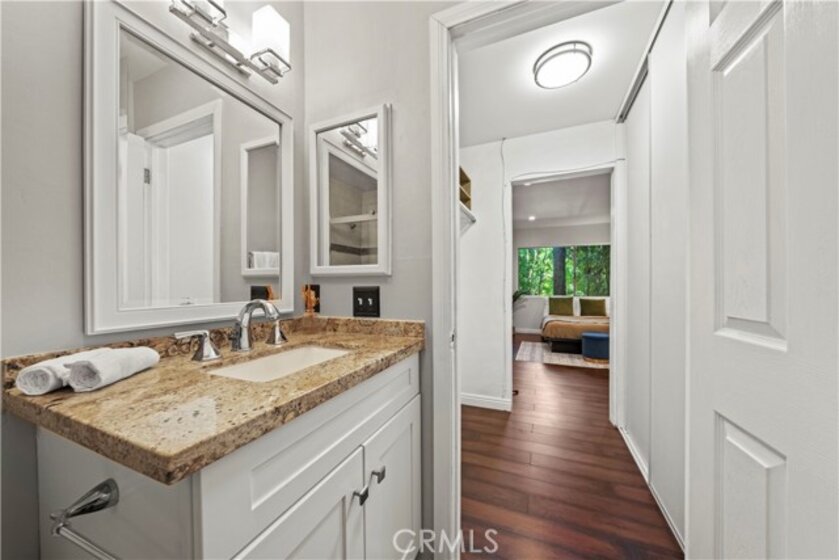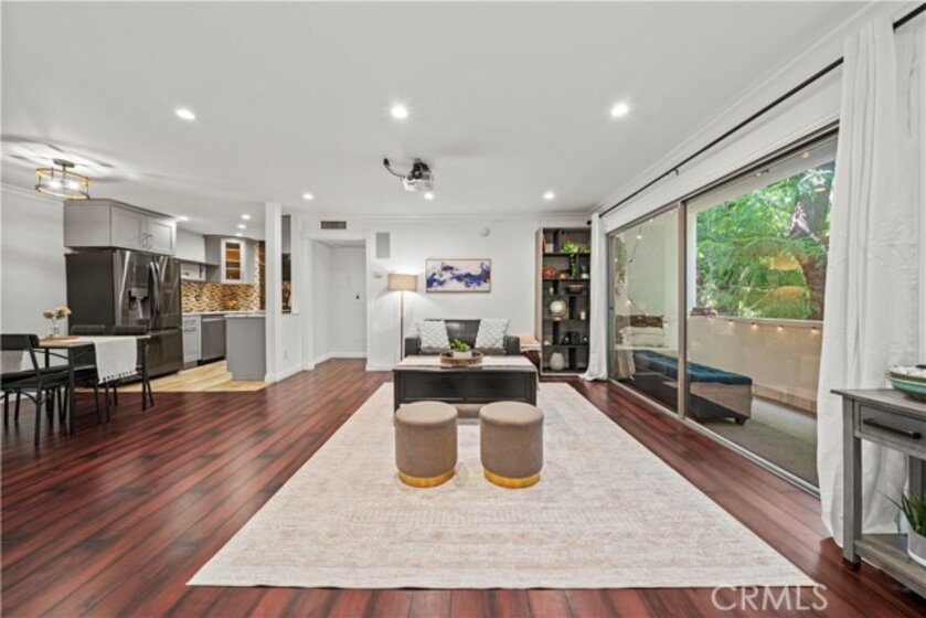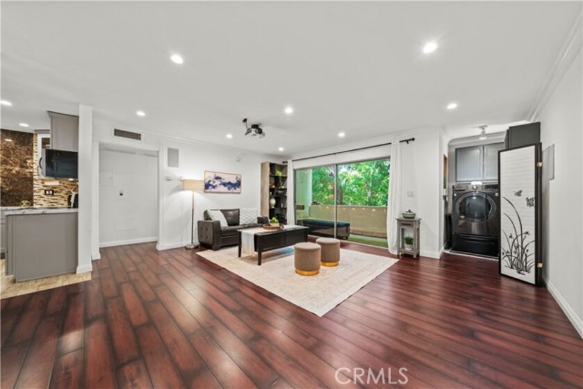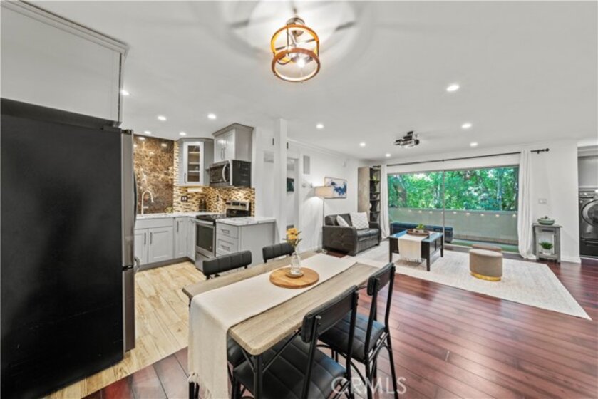 Welcome to this stunning, remodeled end-unit that boasts a split-wing floor plan with 2 primary suites, 2 updated en-suite bathrooms, dedicated parking, garage storage, and an IN-UNIT COMBO WASHER/DRYER UNIT! Enter through the double-door entry into this immaculate unit with a large living room that's designed for entertaining complete with recessed lights and a CEILING PROJECTOR and BUILT-IN SURROUND SOUND SYSTEM providing a true movie-like experience. Your custom-designed kitchen features stunning porcelain countertops, mosaic tile backsplash, modern shaker style soft-close cabinetry with two Lazy Susans and a pull-out spice rack, stainless steel appliances, recessed lighting, and Italian-tiled flooring. Natural light pours in through the large windows of both bedrooms which offer privacy being set on opposite ends. One side features a walk-in closet, office desk area, and a bathroom that screams modern elegance boasting a double-sink vanity with granite countertops, floating shelves, and a drop-in bathtub adorned with beautiful tiled walls and floors. The other suite includes a wall-mounted TV, a bathroom featuring an updated vanity with granite countertops, and a walk-in shower with a bench seat, frameless sliding shower doors, and beautiful tiled walls. Your private living room balcony offers peace and tranquility behind beautiful trees while you get to enjoy your morning coffee or calm evenings while listening to birdsong and nature. Your controlled-access building features a formal lobby, secured parking garage with dedicated parking, elevator, common area laundry, and an HOA includes a pool, BBQ area, water, gas, and trash. Located close to multiple parks, eateries, shops, and entertainment options within the Encino Commons and Ventura Blvd with easy access to major freeways (101, 405, Metro Busway) what more could you ask for! Don’t miss this exceptional opportunity to own a move-in ready condo with all the modern conveniences and a prime location!