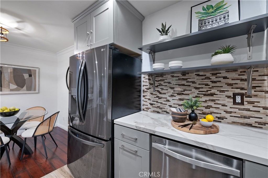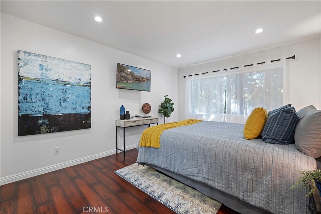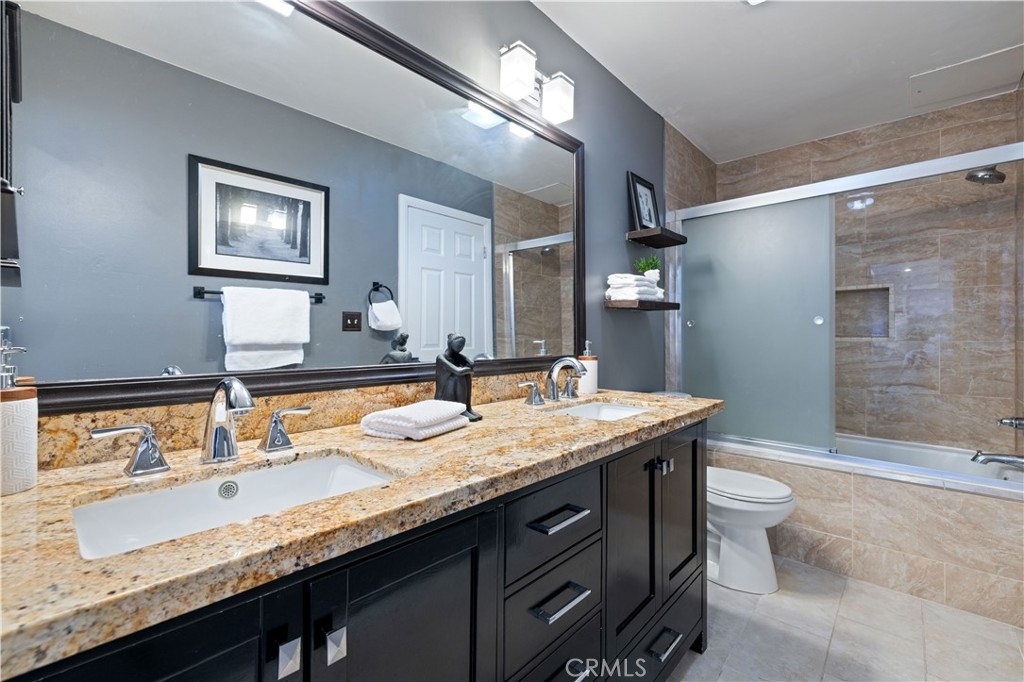 Welcome to this stunning, remodeled end-unit that boasts a split-wing floor plan with 2 primary suites, 2 updated en-suite bathrooms, dedicated parking, garage storage, and an IN-UNIT WASHER/DRYER! Enter through the double-door entry into this immaculate unit with a large living room that's designed for entertaining complete with recessed lights and a ceiling projector with a built-in surround sound system providing a true movie-like experience. Your custom-designed kitchen features stunning porcelain countertops, mosaic tile backsplash, modern shaker style soft-close cabinetry with two Lazy Susans and a pull-out spice rack, stainless steel appliances, recessed lighting, and Italian-tiled flooring. Natural light pours in through the large windows of both bedrooms which offer privacy being set on opposite ends. One side features a walk-in closet, office desk area, and a bathroom that screams modern elegance boasting a double-sink vanity with granite countertops, floating shelves, and a drop-in bathtub adorned with beautiful tiled walls and floors. The other suite includes a wall-mounted TV, a bathroom featuring an updated vanity with granite countertops, and a walk-in shower with a bench seat, frameless sliding shower doors, and beautiful tiled walls. Your private living room balcony offers peace and tranquility behind beautiful trees while you get to enjoy your morning coffee or calm evenings while listening to birdsong and nature. Your controlled-access building features a formal lobby, secured parking garage with dedicated parking, elevator, common area laundry, and an HOA includes a pool, BBQ area, water, gas, and trash. Located close to multiple parks, eateries, shops, and entertainment options within the Encino Commons and Ventura Blvd with easy access to major freeways (101, 405, Metro Busway) what more could you ask for! Don’t miss this exceptional opportunity to own a move-in ready condo with all the modern conveniences and a prime location!