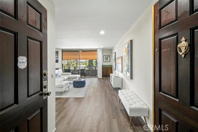 Discover this beautifully remodeled top-floor condo with views in a gated community with a pool and new roof, located at the border of prestigious Amestoy Estates in prime Encino. The double door entry opens to a stunning interior with uninterrupted east-facing views of the neighborhood, visible from the living room through extra-large sliding doors that open to the oversized and exceptionally private balcony. The airy, open floor plan includes a spacious living room, a designated dining area adjacent to the updated kitchen, and two well-sized bedrooms with large windows and private remodeled bathrooms on opposite sides for ultimate privacy. The interior features recessed lighting, tiled floors, modern fixtures, ample storage, and a newer central air & heat system. The kitchen is modern and functional, featuring white shaker cabinets, quartz countertops, a subway tile backsplash, an undermounted rectangular sink with matching fixtures, and stainless-steel appliances. Each bedroom serves as a private retreat. The primary is spaciously designed to accommodate any size bed and includes a makeup vanity, a walk-in closet, and an ensuite bathroom with a glass-door tub and a modern dual sink vanity in rich blue, adorned with gold handles and faucets. The second bedroom offers two large closets and an ensuite that mirrors the first, boasting a walk-in shower with elegantly tiled walls, a mosaic-tiled floor, and glass doors. The community is well-maintained, featuring secure entry, a welcoming lobby, an elevator, inviting common areas, wide hallways, and subterranean parking. The condo is ideally situated near Lake Balboa Park, golf courses, an off-leash dog park, and a vibrant Sunday farmer’s market. Its prime location provides easy access to the 101 and 405 freeways, and it's just minutes from Ventura Blvd, where you can explore a wide array of dining, shopping, and entertainment options. Enjoy the sparkling pool, nearby outdoor activities, or the seamless indoor-outdoor flow of your condo—from the spacious interior to the private balcony with views that create the perfect urban oasis. Don’t miss this rare opportunity to own a slice of Encino’s finest—make it your new home today!