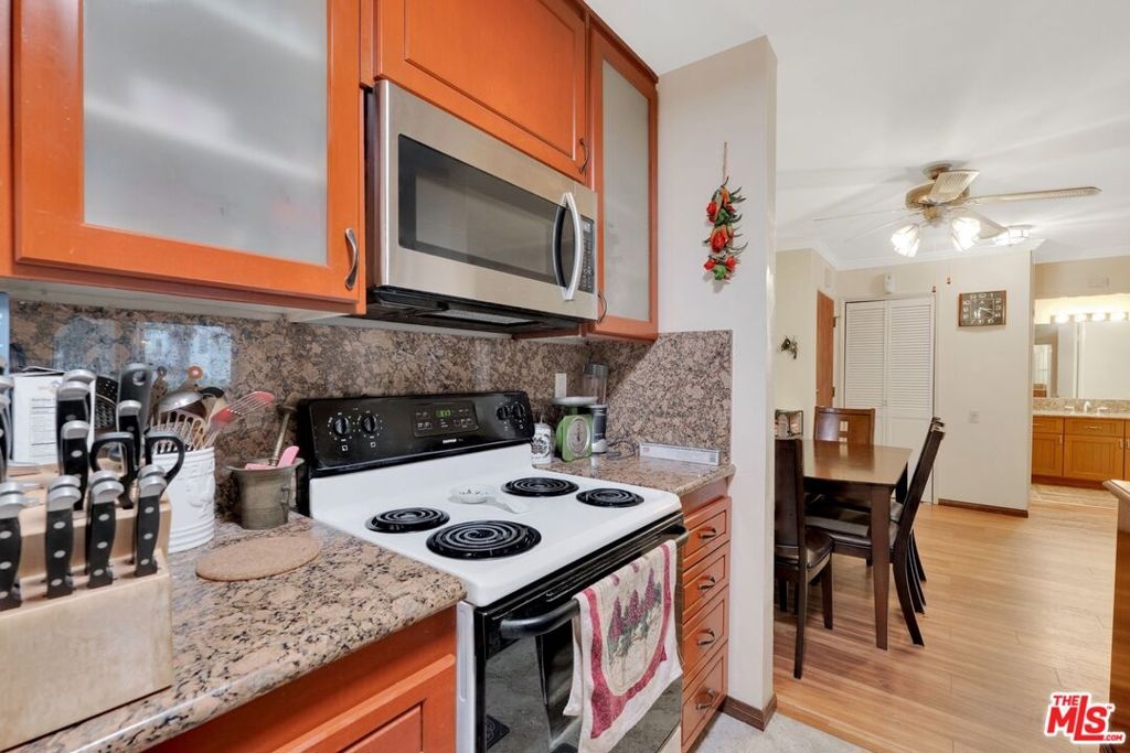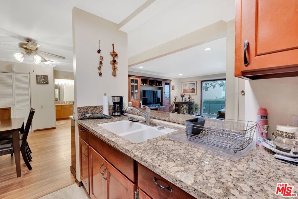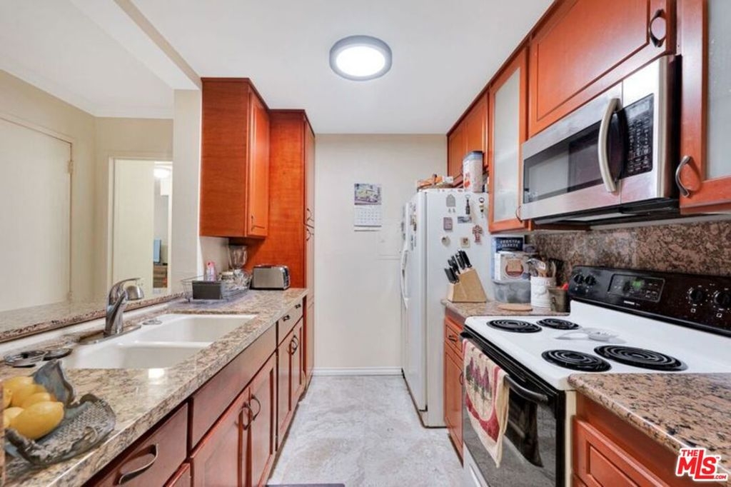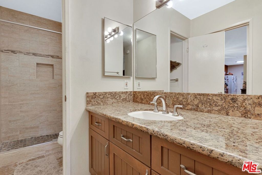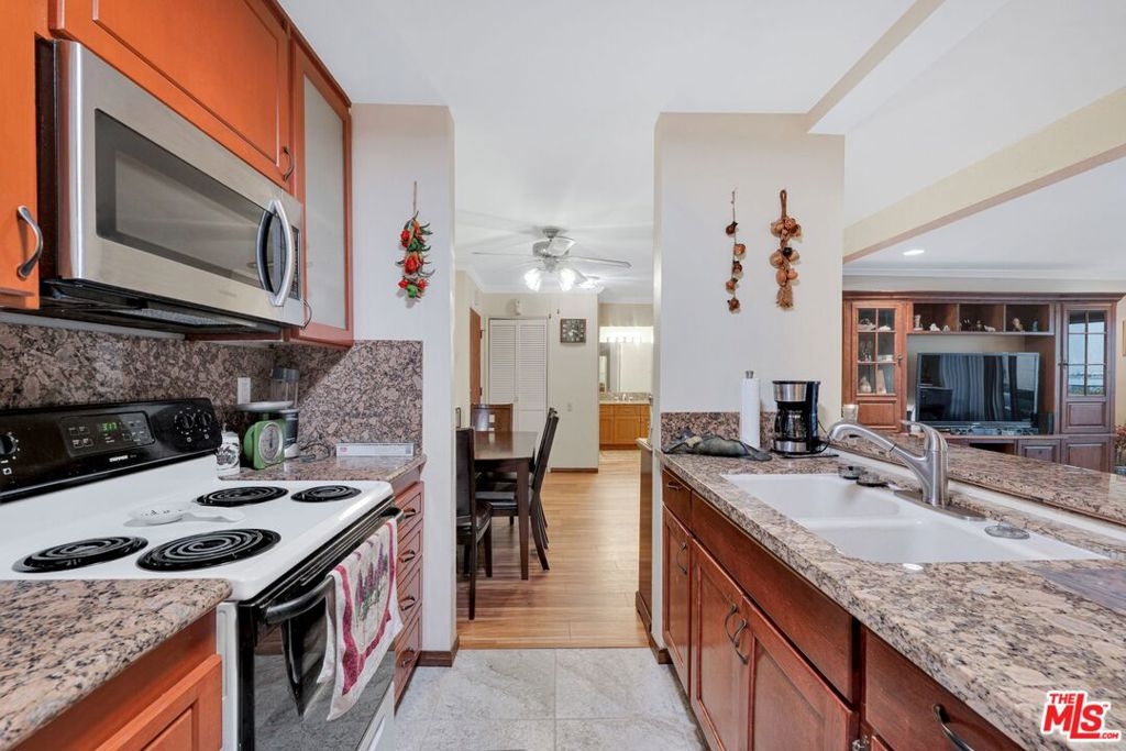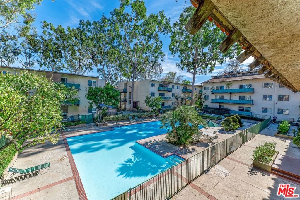 This updated, first-floor unit located in the Encino Estates community offers the best in resort-style living. The condo boasts two spacious suites on opposite sides of the unit, a large living room, an updated kitchen with granite countertops and high quality appliances. The unit also features a balcony with a peaceful view of the tree-lined surroundings and walkways. The living room and bedrooms have stylish hard flooring, while the kitchen and bathrooms are tiled. The unit is situated in the desirable K building and comes with 2 covered, assigned parking spots just steps from the front door. The Encino Estates community is pet-friendly and offers a range of amenities including a sparkling pool and spa, three tennis courts, a recreation room, barbecue area, fitness rooms, sauna, and laundry rooms. The complex is well-located, with easy access to the 101 Freeway, Ventura Boulevard, local restaurants and stores, places of worship, and the Lake Balboa recreational area. The HOA includes earthquake insurance, water, sewer, trash, and 24-hour security.