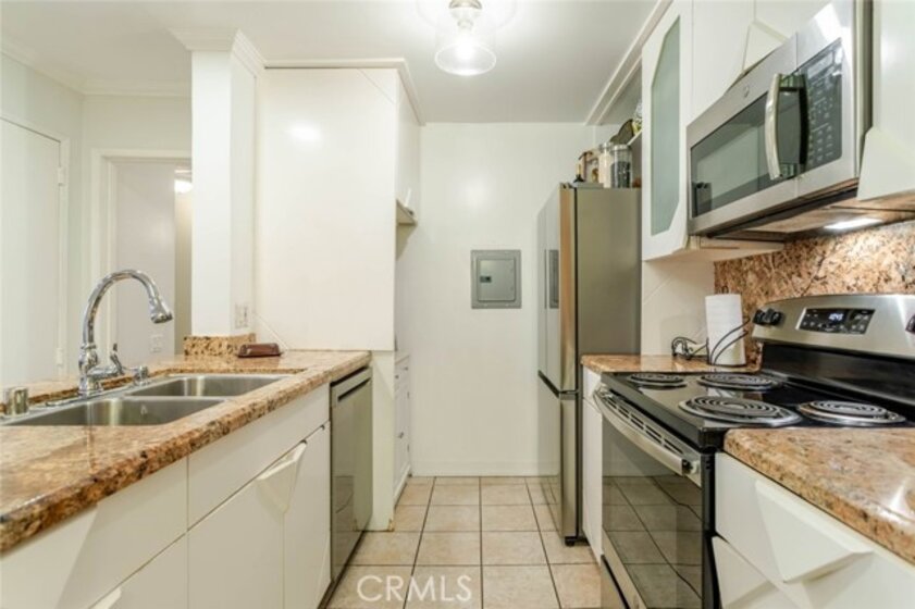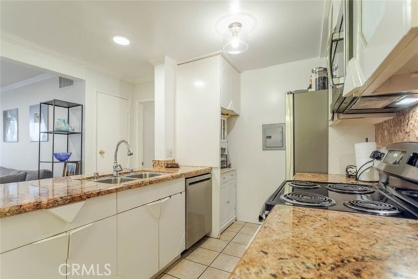 Welcome to this 2 bedroom 2 bathroom condo offering approximately 990 square feet of living space in Encino. Located on the first floor, this unit provides convenient access with no neighboring unit directly beside it. The interior features an open floor plan with tile flooring throughout the living room, dining area, and kitchen, creating a functional layout for everyday living. The kitchen includes granite countertops and backsplash, stainless steel appliances, a stove, microwave, and a newly installed dishwasher. Both bathrooms feature updated art deco style vanities, copper plumbing upgrades, and refreshed finishes. The primary suite includes carpet flooring and comfortable closet space. Additional improvements include a new electrical panel upgraded to city code with receipts available. The unit also offers assigned side by side parking for added convenience. Community amenities include a pool, spa, tennis courts, and dog run areas designed for both small and large dogs. Laundry facilities and trash chute access are located a short distance from the unit. Conveniently located near shopping, dining, and major commuter routes and within walking distance to Holy Martyrs Armenian School, this Encino condo offers comfortable living with interior upgrades and community amenities.