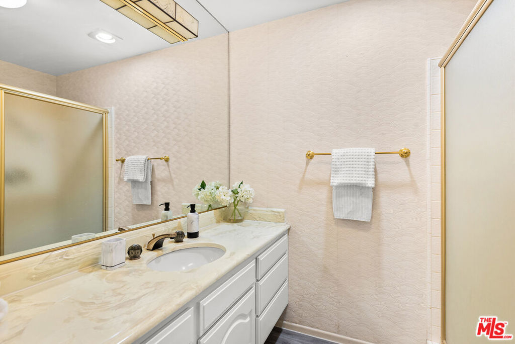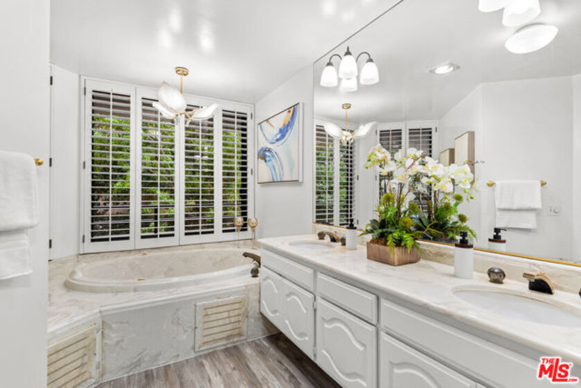 PRICE IMPROVEMENT! Situated in Building 4, a PRIME LOCATION at the exclusive gated community of Encino Towers, is this 1985 SF single story, 2 bed, 3 bath unit with 2 private balconies. The spacious primary suite has a double door entry, 2 walk-in closets, gas fireplace and access to the rear balcony with hillside views. The large primary bath includes separate tub, shower, and double sinks. The living room has a fireplace, wet bar and access to the front balcony with amazing views overlooking the community, trees and the hills of the valley. Other features include the kitchen with stainless appliances, 2 ample pantries, views; dining area; in unit laundry; two side by side parking spaces & additional storage in the garage. Fireplaces are decorative. The grounds are quiet & serene, with lush landscaping, a heated pool, 2 spas, waterfalls, tennis courts, pickleball & resort-like living. HOA includes 24-hour security gate, EQ ins, water, high speed Internet, cable TV & common area maintenance. Guest parking. The exterior of all buildings at Encino Towers have been recently painted and all entrance lobbies have been updated. Just South of Ventura Blvd near shops & restaurants.