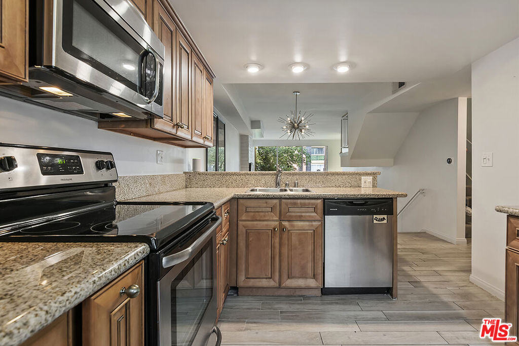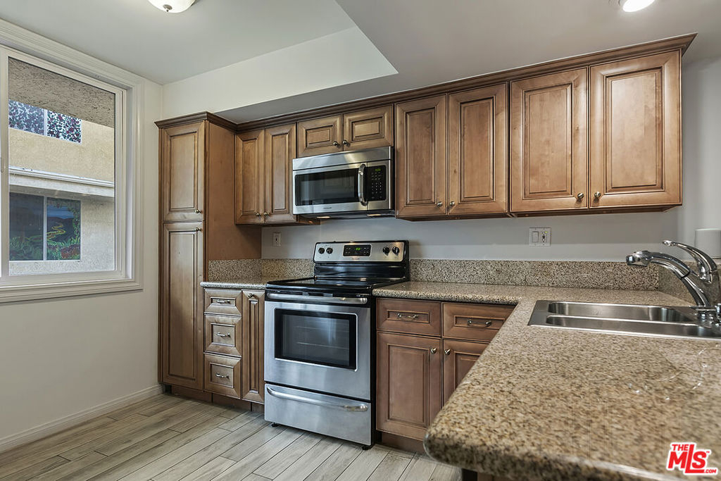 Presenting this gorgeous townhome in the Encino Concord gated community in Prime Encino! Featuring 2 Bedrooms and 2.5 Bathrooms, this stunning home includes an attached garage and IN-unit laundry room. Enter through the private patio to the open floor concept, showcasing elevated ceilings and large windows pouring in light. The entire main living area features high end new wood grain porcelain tiles throughout. The kitchen boasts all stainless steel appliances and opens up to the formal dining area, perfect for entertaining. The spacious primary suite has dual closets, a private balcony, and an en-suite Bathroom. The spacious secondary bedroom has its own en-suite bathroom. The home is child and dog-friendly with its scratch-resistant and durable flooring and various private outdoor spaces. The community includes lush landscaping and trees, a large sparkling pool and jacuzzi spa. Walking distance to Ventura Blvd including Target and Whole Foods and Easy Freeway Access.
