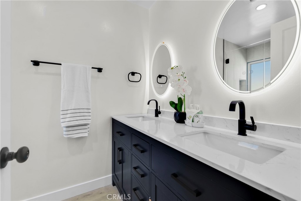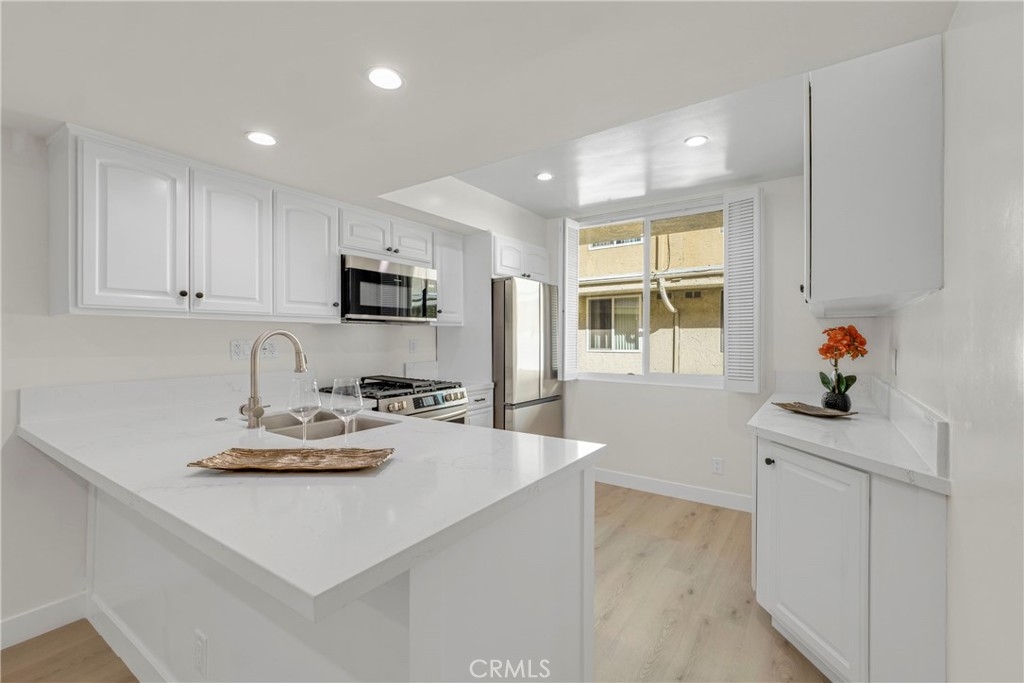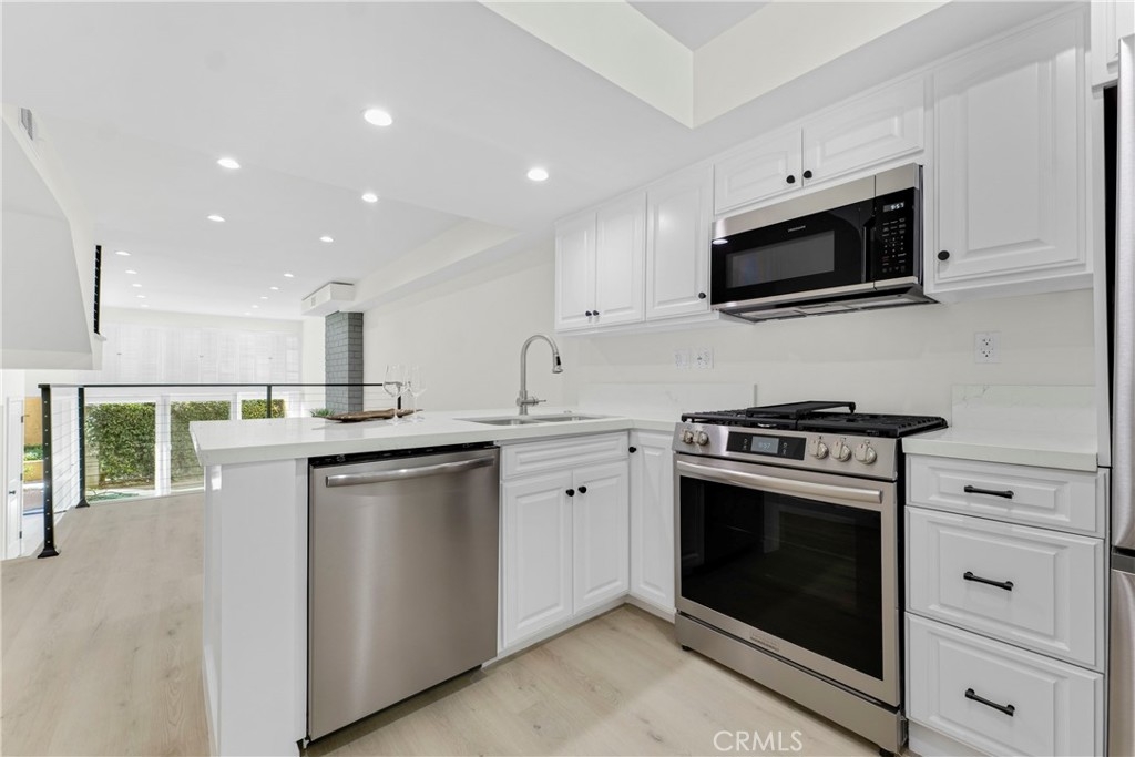 Welcome to your dream home! As you step through the door of this completely remodeled townhome, you are immediately embraced by its spacious and inviting ambiance. This townhouse is a haven of contemporary living in the heart of Encino. The home is bathed in natural light, courtesy of the high-vaulted ceilings and impressive floor-to-ceiling windows. New SPC flooring flows seamlessly throughout, leading you to the large living room adorned with a floor-to-ceiling fireplace. The kitchen has been renovated and painted to fit modern-day living, with all new stainless-steel appliances and updated quartz countertops. Next to the kitchen, you will discover a private laundry room, with a powder-room that is perfect for guests. Ascend to the upper floor to find the sleeping quarters, where you will discover two primary suite bedrooms with luxurious en-suites. Additional upgrades include new windows and doors throughout the home, new paint, new 4 Ton HVAC system including a Nest thermostat, new electric sub panel, new recessed lights throughout, two reading lights for the primary bedroom, humidity sensing exhaust fans in the bathrooms, oval LED Lighted Anti-Fog Bathroom Mirrors with 3 Color Lights, new Horizontal railings, new insulation, and new water pipes throughout. An attached garage provides easy and private access to your home. Residents can enjoy community amenities such as a pool & spa, shower rooms, and a meeting room. Don't miss out on the opportunity to make this exceptional townhome your new residence. This townhome's location is unbeatable, just blocks from the 101 freeway, Trader Joe's, places of worship and the trendy dining and shopping of Ventura Blvd.