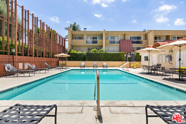 Prepare to want to stay when you step into this pristine Encino Townhome. Everything you need can be found in this 2-bedroom 2.5-bath condo/townhome boasting high ceilings and an open floor plan offering almost 1500 square feet of living space to include your own 2 compact car private entry garage. This light infused home with floor-to-ceiling windows offers a sophisticated ambiance, great for entertaining or spreading out to relax in the large sunken den or read in two separate & private outdoor spaces. Meet your friends for gatherings in the immaculately landscaped pool area where you can dive into the pool or soak in the spa area that provides locker rooms. You can even have a picnic in the garden or play games like croquet. Your guests will be greeted by the Jasmine and fruit tree lined walkway leading to your own private patio entrance. Upon entering the open split-level floor plan, you will see the sweeping ceilings filled with light coming from the end-to-end windows. The open staircase allows for light to enter from the second floor where you will enjoy 2 bedrooms with ensuite bathrooms. Our sellers really love the brush top views from the peaceful primary bedroom balcony. There are 2 closets and plantation shutters allowing for either very sunny mornings or keep them closed to sleep in and relax. This unit is one of the cleanest and cared for townhomes around! You cannot miss the pride of ownership here!