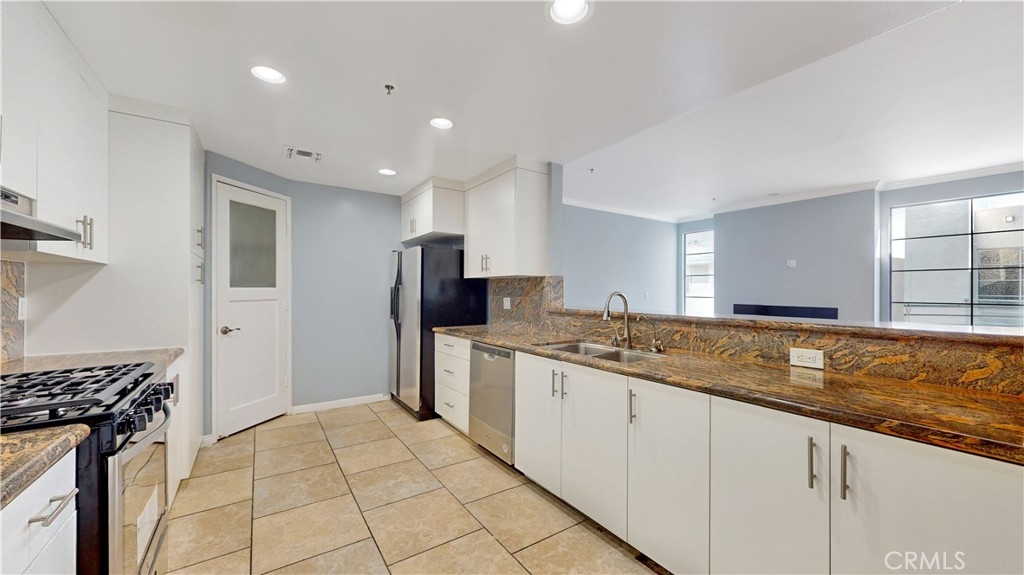 Movin' on up to the east side (of White Oak) to a deluxe condo in the sky! Fantastic opportunity within the sleek contemporary design of the Encino Marquis, where the controlled entrance keeps you safe & sound. Ride the elevator straight to the top floor where you can reside in peace without a noisy neighbor driving you cuckoo from above. Inside this light & bright unit, enjoy 9ft. smooth ceilings, beautiful flooring & floor to ceiling windows inviting natural light to shine. Gorgeous kitchen offers loads of stunning granite counters, brand new stove/oven, walk-in pantry & refrigerator. Spacious living room affords a cozy fireplace. Your primary suite delivers a large walk-in closet and luxurious bath with separate shower & soothing soaking tub. An additional bedroom, full bath, in-unit laundry & side by side gated subterranean parking add to the appeal. In the center of it all is a pool & bubbly spa. Sought after Encino locale is Freeway & Blvd. close...don't miss.