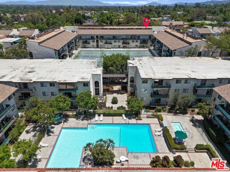 A 990 SF condo in Encino for under $300k? LOCATION, LOCATION, LOCATION! Fantastic and tranquil 2 bed 2 bath unit in one of Encino's most sought-after communities, Encino Oaks. This unit offers 2 en-suite bedrooms on opposite sides connected by an open floor plan where living room, kitchen and dining area enjoy the natural light from the east-facing balcony with tree-top views, and 2 covered parking spots steps from the unit. Community amenities include: elevator, recreation center, sparkling pool, Jacuzzi, 3 tennis courts, ping pong tables, and a cozy fireplace, BBQ areas, men's and women's separate gyms with saunas, security guard, on-site management office, and laundry rooms throughout each floor. Centrally located near the 101 & 405 Fwys near Ventura Blvd, and walking & rolling distance to Trader Joe's, Balboa Sport center, Tarzana Square, gas station, and more. Whether as income property, primary residence, or a pied-a terre in Los Angeles, this unit is move-in ready and looking for the perfect buyer!