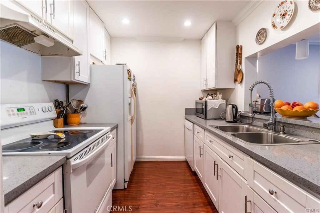 Opportunity of a life time to own a magnificent updated condo in the highly desirable area of Encino. Resort living in one of the Encino's most sought after communities. This bright and specious condo features 1 bedroom 1 bathroom, recessed lighting and laminate flooring throughout. The updated kitchen includes white shaker cabinets and quartz countertops. The open airy living room open up to a sliding glass door that leads to a generously sized balcony. This unit gets tons of natural sun light. Amenities at Encino Oaks include private security, resort-like pool and spa, 3 tennis courts, a gym, sauna, recreation room, BBQ areas, a banquet room, laundry rooms throughout each floor and a substantial amount of guest parking. HOA fees also include water, trash and insurance. Conveniently located near shopping, restaurants, Encino village, Trader Jos's, whole foods and Easy access to 101& 405 freeway.Gated community with on-site security.