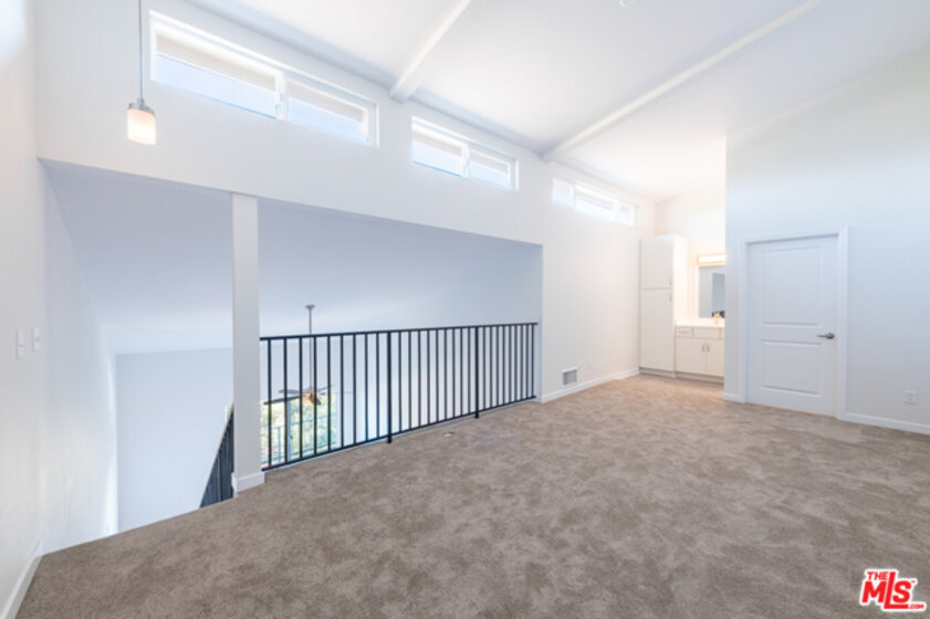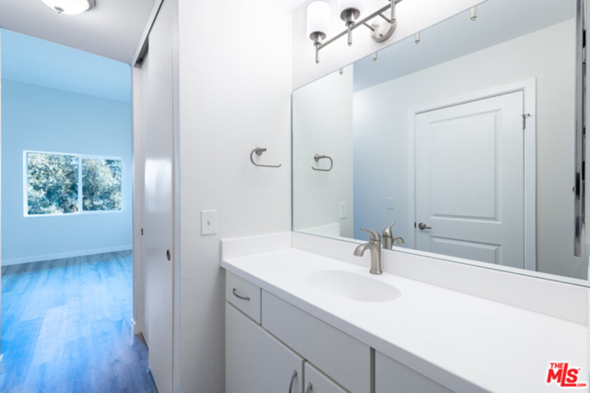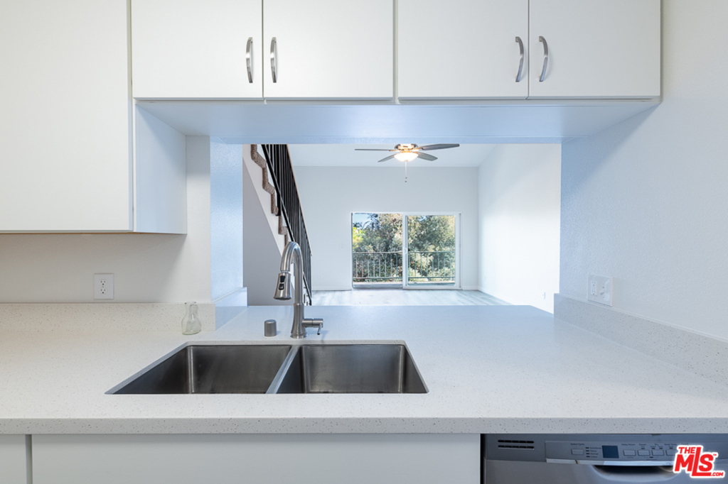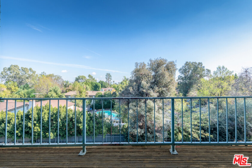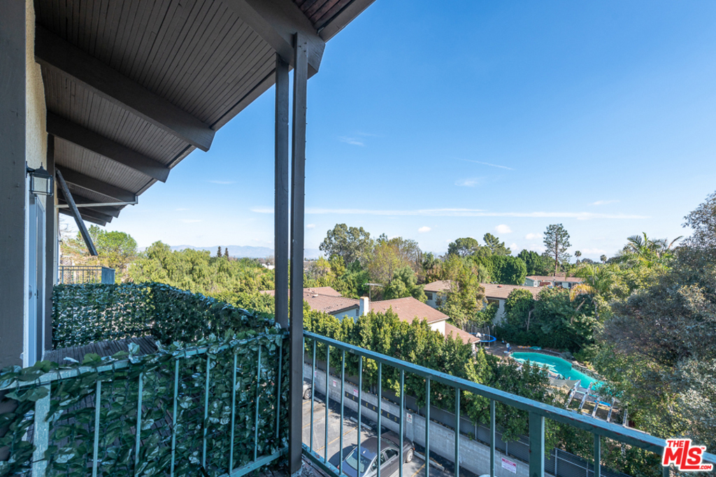 Hands Down the best unit in Encino Oaks. This beautiful top floor unit was just completed and fully remodeled. Everything is brand new. This large two story townhome style unit features two bedrooms , the largest unit which is 1,009 ft ,One very nice bedroom downstairs with two closets ,vaulted ceilings & full bath, & one bedroom upstairs loft with its own private bath and soaring ceilings. Beautiful Caesarstone Kitchen Counters with SS Frigidare oven/range, breakfast bar,Hardwood Floors, Cozy Dining area, Open living room with very high ceilings, beautiful balcony overlooking greenbelt and explosive snow capped mountain views . New Electric, New A/C New Paint, New Carpet, New Appliances, New Light fixtures,New kitchen and New baths, New doors, New Windows. No Expense spared. This is the best building in the complex.. This unit is facing the rear of building and very quiet. Just bring your toothbrush.You will not find a better unit in the price range totally done..Shows like a model
