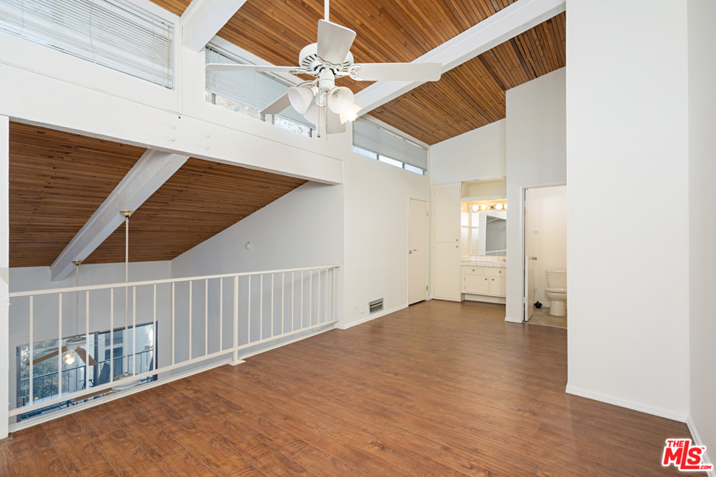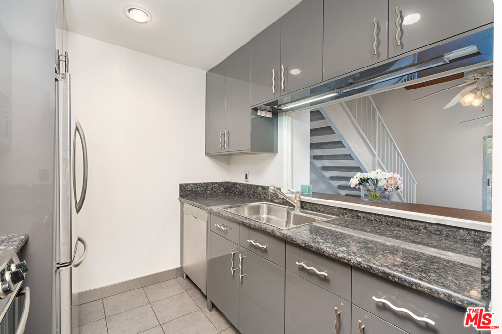 Encino Oaks resort style living! Enter through a tree lined courtyard before arriving at this bright two level condo on the top floor. The first level boasts a spacious living room, recently renovated kitchen with stainless appliances as well as the primary bedroom and bathroom. On the second level there is an additional bathroom, large walk in closet, and loft style bedroom. This is the only unit on the market over 1,000 SqFt! Community offers three tennis courts, a sparkling pool, spa, banquet room, recreation room with a cozy fireplace, pool table, ping pong tables, barbecue area, dual gym, sauna, security guard, and laundry rooms on each floor.