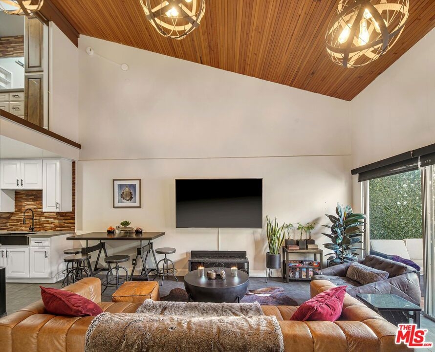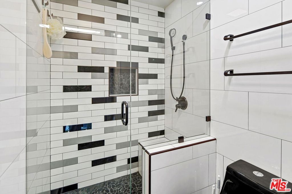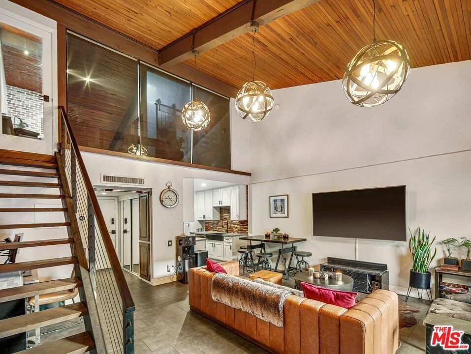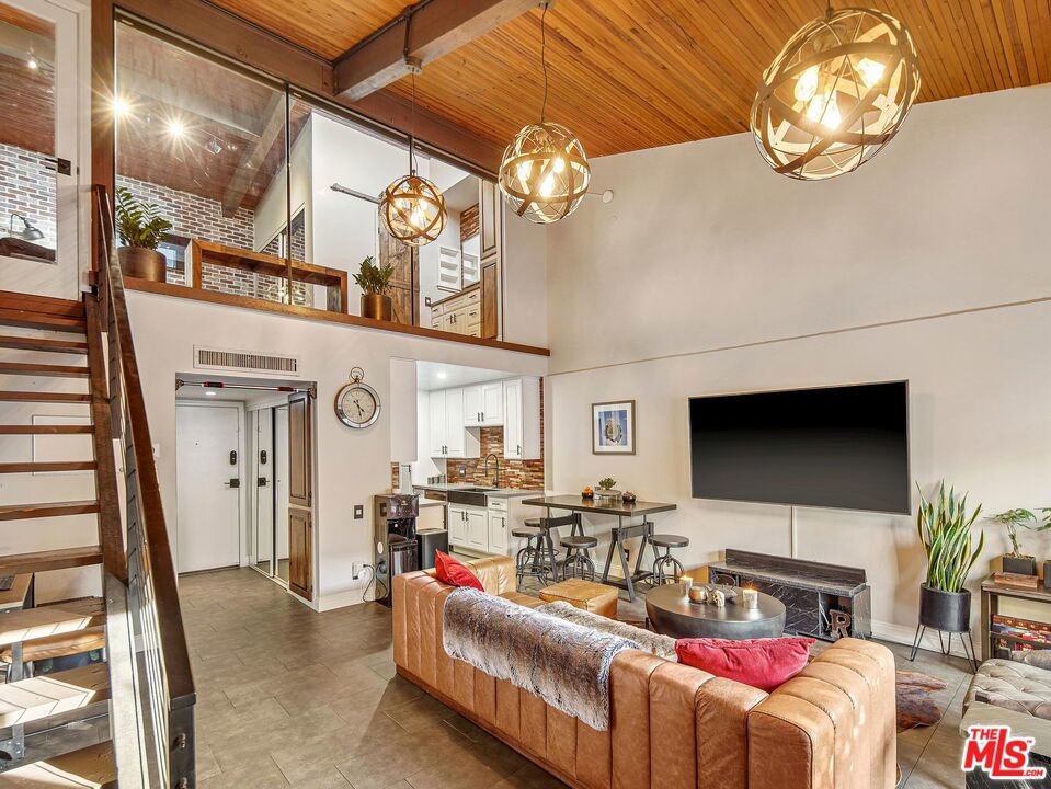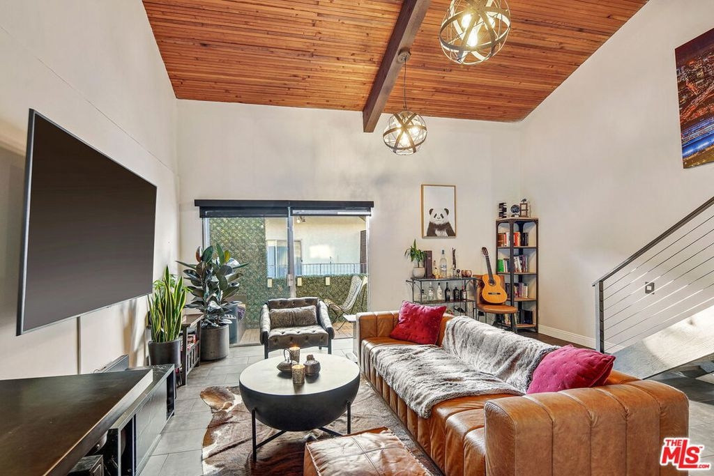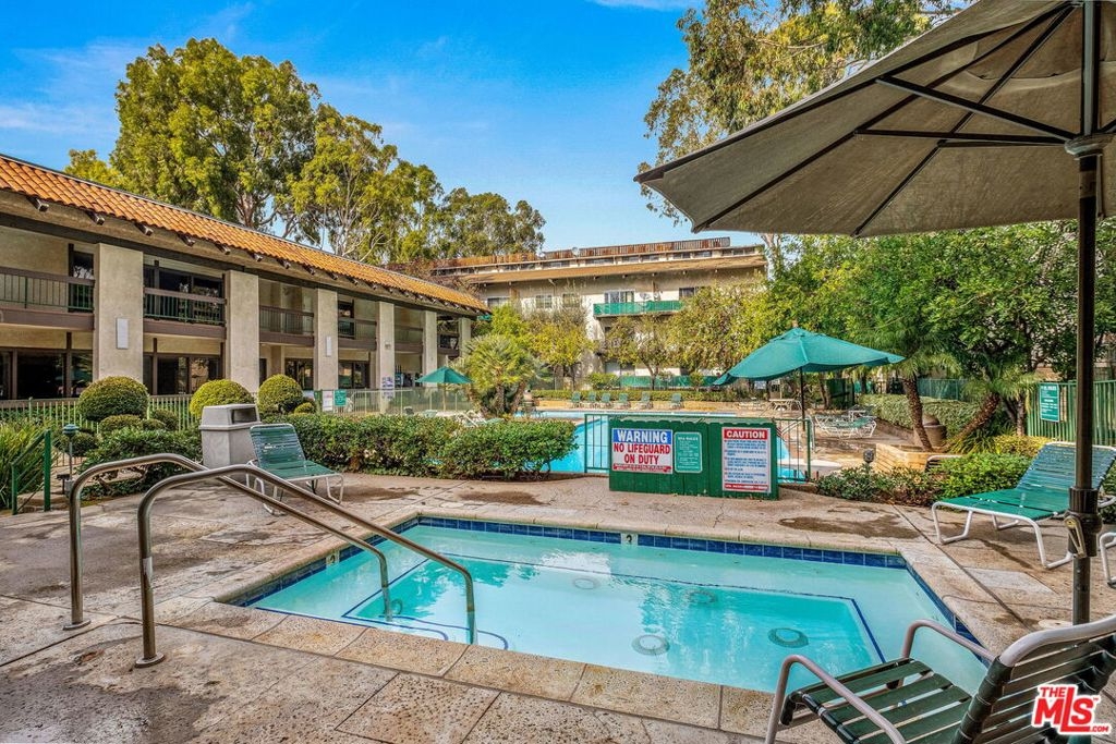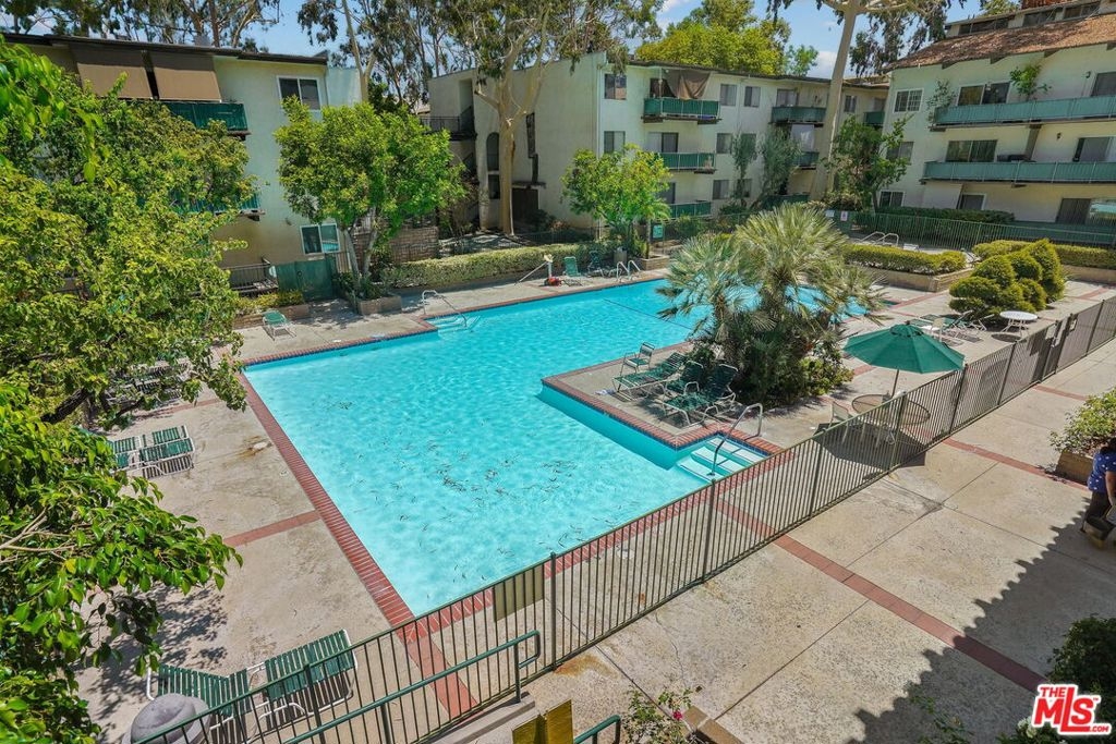 Modern top-floor, loft-style condo in the heart of Encino. This 1BD/1.5BA unit has been meticulously designed and remodeled from top to bottom. Enter to find an open concept layout with soaring ceilings, beautiful tile flooring and new light fixtures throughout. The updated kitchen has a custom wood backsplash, new cabinets with ample storage space, stainless steel appliances, and granite countertops. The kitchen flows seamlessly into the dining area and spacious living room with direct access to a generously-sized private balcony with new faux-wood decking, trellises with greenery and solar-powered string lighting. The primary bedroom has an en-suite bath and walk-in closet along with custom glass partitions featuring electric, remote-controlled privacy shades. There is also a nook under the stairs that would be perfect for a home office as well as a half-bathroom downstairs ideal for guests. The unit also comes with 2 side-by-side assigned parking spaces. Building amenities include a 24-hour security guard, resort-like pool and spa, 3 tennis courts, a gym, sauna, recreation room, BBQ areas, and banquet room. HOA fees also include water, trash and insurance. Located moments to Ventura Blvd, top shopping, dining and near freeways for easy commuting. Welcome!