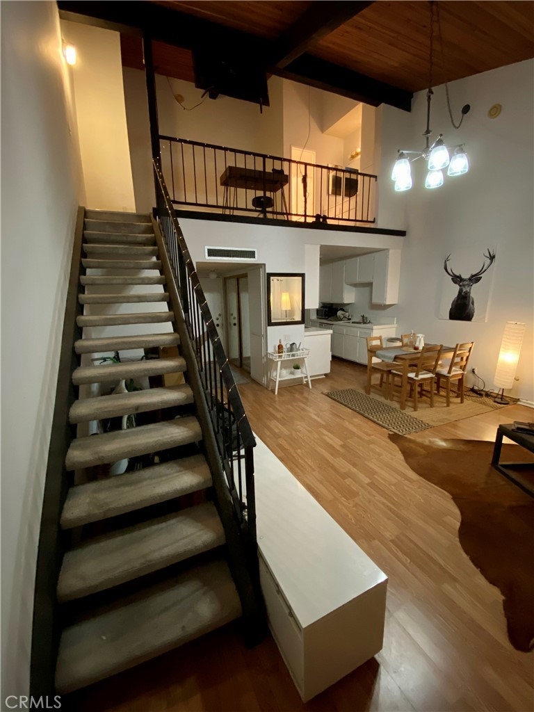 OFFER ACCEPTED. SEE AGENT REMARKS FOR BIDDING INFO. Open and airy Encino Oaks top floor loft condo featuring a spacious balcony, cathedral ceilings and hardwood floors! Enter home through a relaxing living area with exposed wood beam ceilings, ample room to entertain, and a half bathroom for guests. Kitchen opens seamlessly to the living area. Enjoy a master bedroom loft with high ceilings, a mirrored closet and a vanity. Two dedicated side by side parking spots in garage. Probate sale with court confirmation.