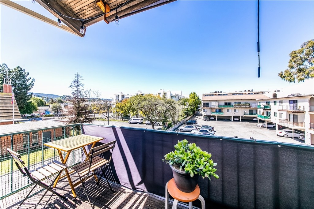Beautiful Loft Unit in Encino Oaks right near the Center of it All! This open and airy home has views of the Santa Monica Mountains, the San Gabriel Mountains and you wouldn't believe the Sunsets! Walk into the large living room with gorgeous bamboo, eco-friendly bamboo flooring. The sliding glass doors at the opposite side open to your own private balcony. The screen doors to balcony also have UV shaded filters for energy efficiency for those So Cal summers. Sit and sip your morning coffee as you hear the birds chirping while the city wakes up. The kitchen is adjacent to the living room providing for an Open Concept setting. It boasts granite marble counter tops, a reverse osmosis filter system and a sleek look. There's a downstairs and an upstairs restroom, with new receptacles replaced in 2022. Upstairs is a large master bedroom ensuite with new carpeting (2022) with a full bathroom and also more views of your lovely surroundings. We also have a new Central A/C and heating system (2020). This unit is the furthest from the freeway in the complex so noise is not an issue. The neighbor to the south is a church that is very quiet and also aesthetically pleasant. And the Amenities in this community are impressive! Enjoy the tennis courts, sparkly swimming pool, jacuzzi, grassy eating areas, recreation room, meeting room, billiards room, the gym with the sauna/steam room. The HOA pays gas, water, sewer and they even has earthquake insurance saving you money on your mortgage.