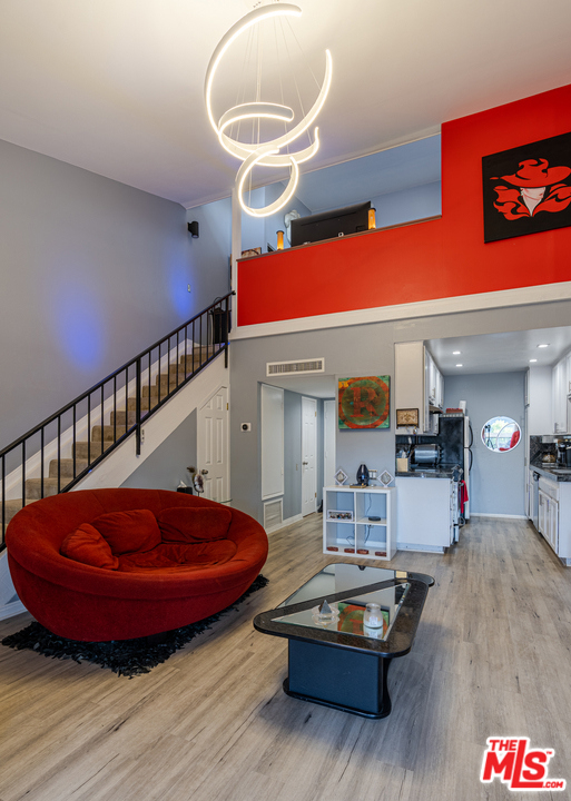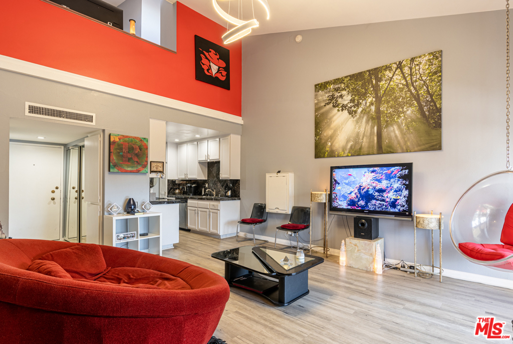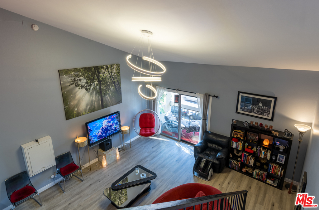 Welcome to this ONE-TIME opportunity to own an Amazing Modern Top Floor LOFT with Mountain Views in Encino!! Must see to appreciate!! Located in the building front, on the South side walking distance to Ventura Blvd!! The unit is remodeled & has many Special Features: Top of the line Modern Aluminum LED Ceiling Light Fixture, Installed NEST System, Hanging Ball Chair to enjoy the Breathtaking Balcony Views, Granite Counter Tops in the kitchen, Extra Storage under the stairway, Very High vaulted Ceilings.. The unit also features a Guest bathroom downstairs, a Dining area and a large living room leading to a great size & roomy Balcony with Mountain & Palm Tree Views.. The stairs then lead you to a Loft-Style bedroom, 2 closets & a full bathroom. Unit is close to laundry room for extra convenience & comes with 2 tandem subterranean parking spaces that are near the elevator. Community Amenities to enjoy include a large sparkling Pool, Sauna, Tennis, Fitness..
