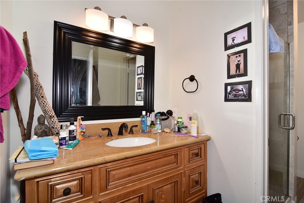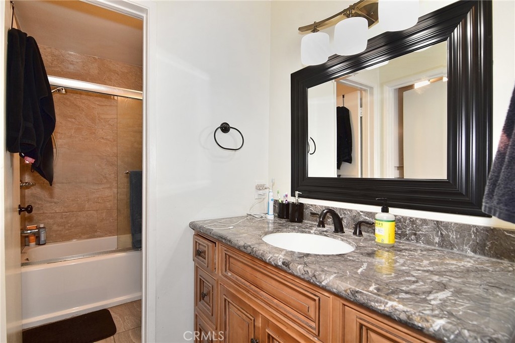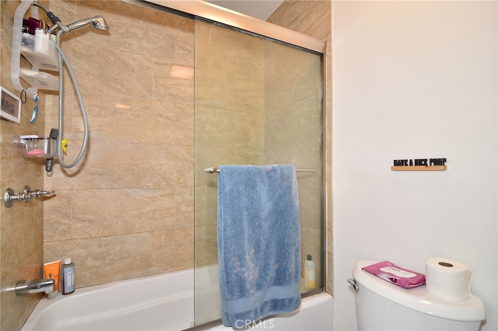 Great Opportunity located in the beautiful city of Encino ! Currently occupied by great tenants ( month 2 month ) paying $2300 /month . This top floor 2 bedroom condo has been updated & offers a great layout . 2 bedrooms on each side of the condo with its own updated bathrooms . New Vanity and shower tiles in bathrooms. Newer windows plus sliding glass door that leads you out to your private balcony offering you some views . Kitchen has also been updated and includes all stainless steel appliances. Smooth ceilings throughout & laminate wood floors throughout as well . Great building , with lots of amenities such as a sparkling pool & spa, fitness center , sauna's , 3 tennis courts , BBQ areas, recreation room & more . HOA includes water, trash earthquake insurance & security . Laundry areas on each floor . Convenient side by side parking, and great central location close to Ventura BLVD, Trader Joes, schools and day care centers + easy access to 101 & 405 freeways .