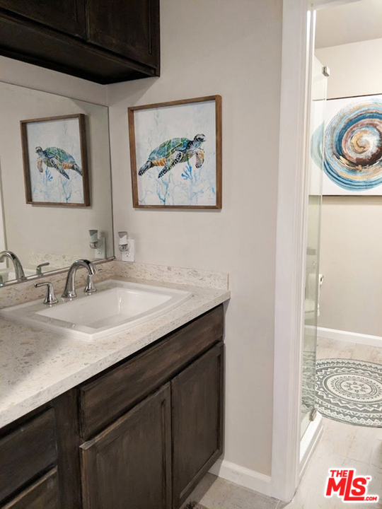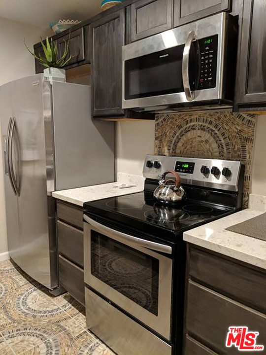 Amazing opportunity to own in Encino! This beautiful top-floor corner unit features an open floor plan on 990 square feet of living space. Large two-bedroom, two-bathroom double master, each with an en-suite bathroom. Fully remodeled in 2019, move-in ready condition. Option to purchase fully furnished. Beautifully remodeled fully functioning kitchen includes all appliances. Large dining area and living room lead out to a peaceful balcony. Two assigned garage parking spots. Complex amenities include heated pool and spa, sauna, fitness center, three tennis courts, barbecues, recreation room, and banquet area. Association fee includes water paid, complex insurance paid, trash paid, and 24-hour security.