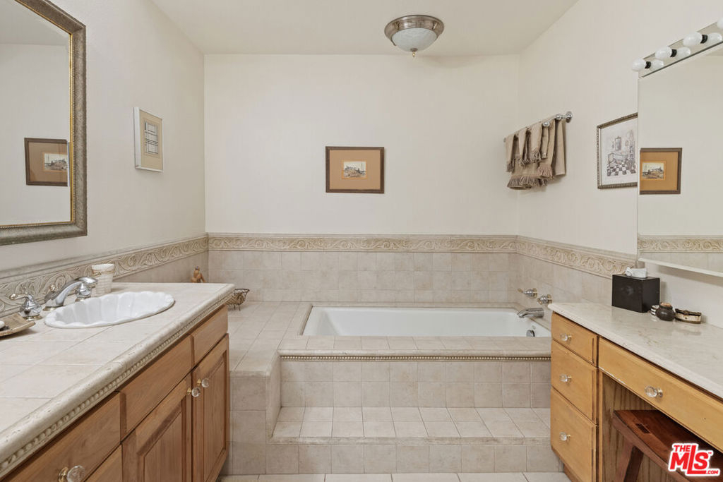 Welcome to Encino Park West, a luxury full service building in the heart of Encino. This ground floor, one level; two-bedroom, two bath unit with expansive patio area is a rare treasure. The lush ivy lined and full green space patio runs the entire length of the unit, giving plenty of room to take in the fresh air of the outdoors or let the kids play. A very well maintained elegant unit, with a seamless layout and great privacy. The primary bedroom suite is very large allowing space for a king bed and a seating area. Finishing off the primary suite with a walk in closet including luxury built-in's make for a well organized space; a double vanity bathroom with walk in shower and separate massive tub make for a spa like experience. The second bedroom has built in cabinetry (removable, if desired), a great office or flex space. A well equipped functional kitchen with wood cabinetry, double wall oven and built-in breakfast nook. Additional features include a formal dining area, built in tv console, hardwood floors, side-by-side in unit laundry, high end shutters on all windows, and two tandem parking spaces. Building amenities include 24-hour security and concierge located in the grand lobby, a pool/spa, sauna, a recreation room with full kitchen and library, a gym, and secure mail room. HOA fees cover cable, gas, sewer, trash, water, building insurance including Earthquake, elevator maintenance, and groundskeeping, ensuring a seamless and worry-free living experience. Across the street from beautiful Encino park, an easy stroll to world-class shopping and top rated schools. Encino Park West is a luxury residence that evokes ease of living with the presence of a great community.