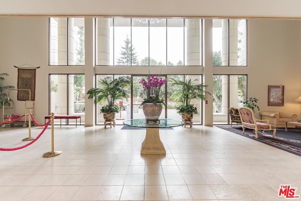 Elagant Lobby .Controlled access . 24 hrs. front desk and concierge . Luxurious and large private third floor corner unit overlooking courtyard. Spacious formal living area with dining room, breakfast nook, and balcony. Light bright kitchen with granite countertops, and stainless appliances. Large den with walk-in closet could easily double as second bedroom. Large master bedroom with dual walk-in closets. Remodeled bathrooms. Stackable washer & Dryer and wet bar. HOA amenities included in fee: basic cable, water, trash, pool, spa, gym, sauna, doorman, security, earthquake insurance, and rec room. 24-hour doorman and full security. Fully furnished unit . A must see!