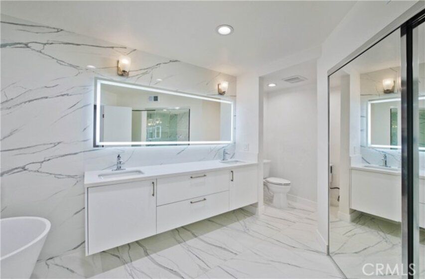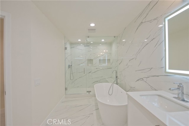 Welcome to this beautifully updated, newly remodeled two bedroom, two bath with separate office, high-end condo featuring an open floor plan designed for modern living. The spacious living area flows seamlessly into a separate dining space—perfect for entertaining or relaxing in style. This is a bright, inviting atmosphere throughout. Enjoy newly installed flooring in the kitchen, hallway, and bathrooms, brand new stainless steel appliances, brand new washer & dryer, and brand new HVAC system for year-round comfort. The kitchen offers sleek finishes and contemporary appeal, while both bathrooms are tastefully remodeled. It looks like chic hotel living. Step outside to your private patio, ideal for morning coffee or evening unwinding. Situated in the heart of Encino, this place combines comfort, sophistication, and convenience—close to shopping, dining, and everything the Valley has to offer. This unit has 2 car side by side parking located next to the elevator.