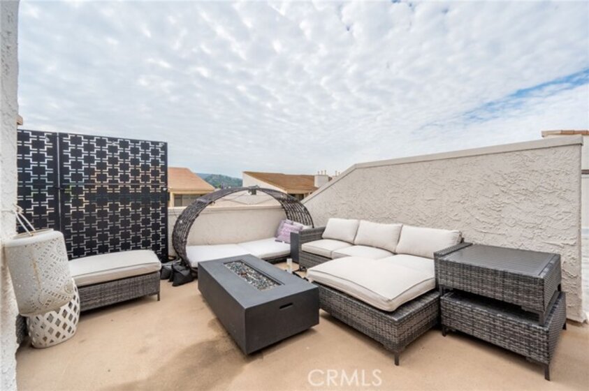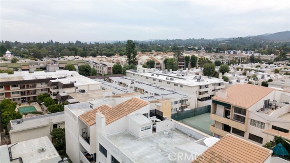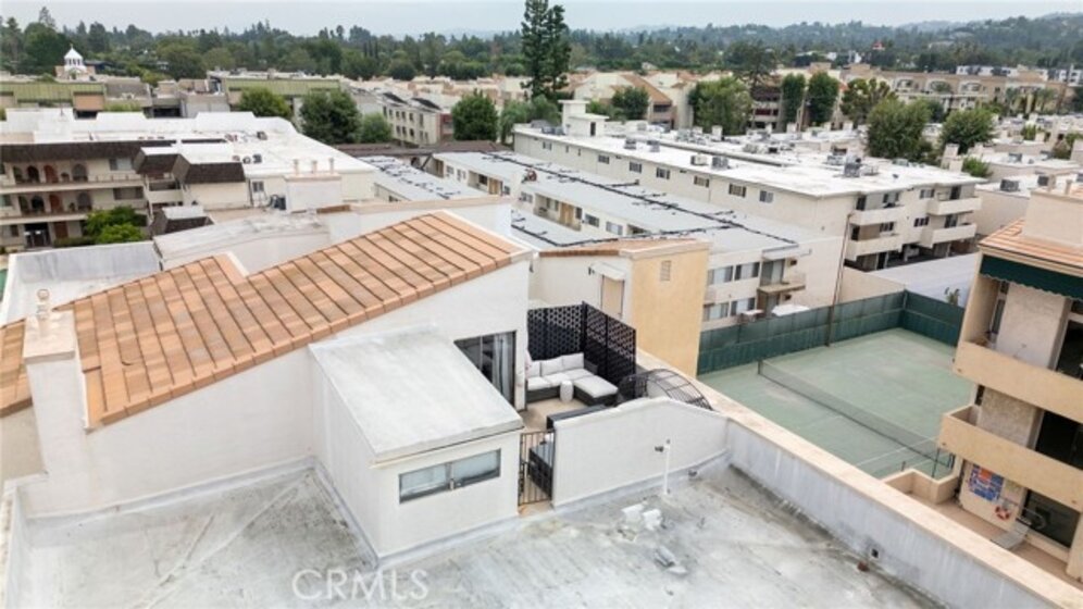 Welcome to Penthouse 312 a striking, light-filled top-floor unit in the highly sought-after Encino Racquet Club complex. Spanning 1,600 sq ft, this expansive residence offers a clean and bright move-in ready layout, offering the perfect blend of style, comfort, and convenience for inspired living and entertaining.Enter through a grand, solid entry door and private vestibule into a stunning Great Room flooded with natural light from soaring 18-foot windows. The space is anchored by a stylish wet bar on one side and a gas fireplace on the other, creating the perfect flow for gatherings. Step out onto a spacious private deck ideal for morning coffee, evening cocktails, or al fresco dining. The dramatic formal dining room features a statement chandelier suspended from above, adding a sense of elegance and scale. The kitchen includes a Frigidaire stove and oven, wine/beverage cooler, LG refrigerator, and a dishwasher, and features freshly reglazed countertops for a clean, modern look. A cozy breakfast nook makes the space perfect for casual meals or creative brainstorming sessions. A thoughtfully designed front hall includes an in-unit washer/dryer, a built-in office nook, and additional storage. Down the side hall, you'll find a guest bathroom with a newly reglazed shower and two generous bedrooms including an expansive primary suite with its own bathroom, dressing area, and large walk-in closet. Upstairs, a versatile loft space functions as a private home theater, studio or even a potential third bedroom offering flexibility to suit your lifestyle needs. It features voice-activated, automated blackout curtains to create the perfect cinematic experience. Sliding doors open onto a private rooftop deck with panoramic views. Whether you're entertaining under the stars, starting your day with yoga, or simply enjoying a quiet night of stargazing, this rooftop sanctuary is a one-of-a-kind escape. The location is just as exceptional enjoy easy walkability to Trader Joe’s, Ralphs, Target, and a wide variety of restaurants and cafés. Lifestyle and convenience meet in one of Encino’s most desirable neighborhoods. The Encino Racquet Club community offers resort-style amenities including a heated pool and spa, koi pond, and a north/south-facing lighted tennis court. also included: patio furniture, projector, 110" movie screen and automated blackout curtain.