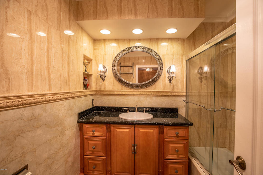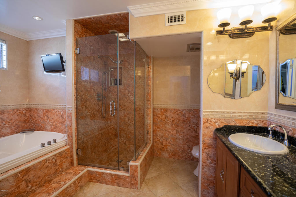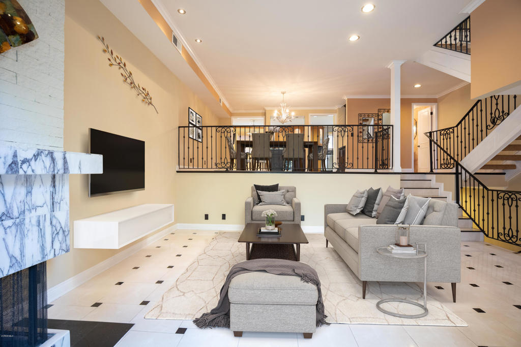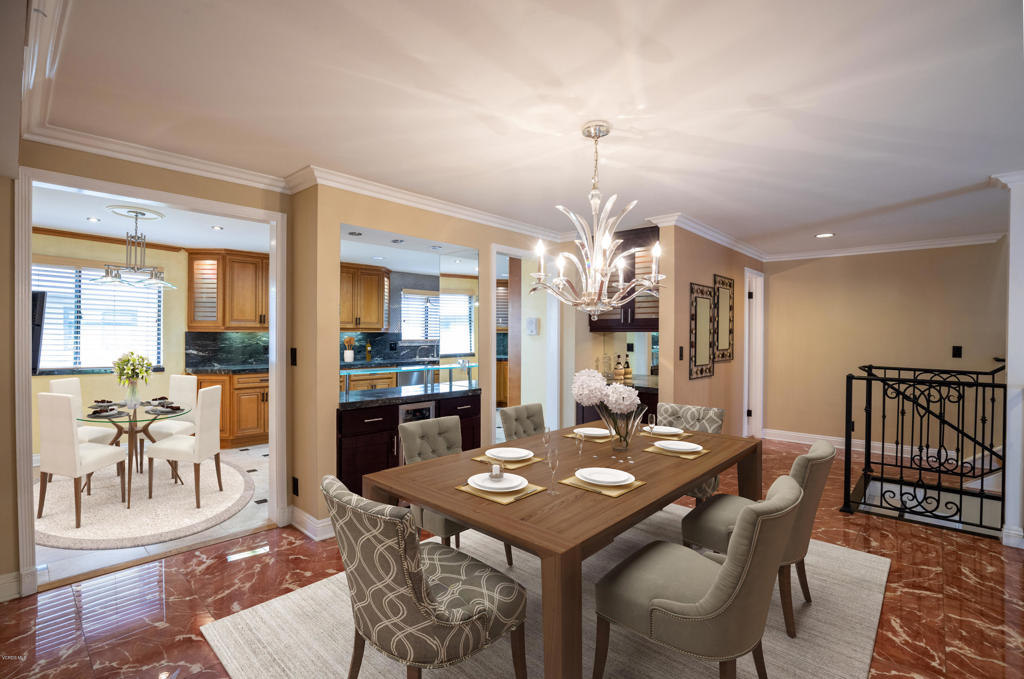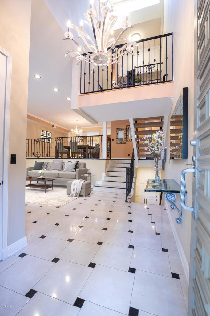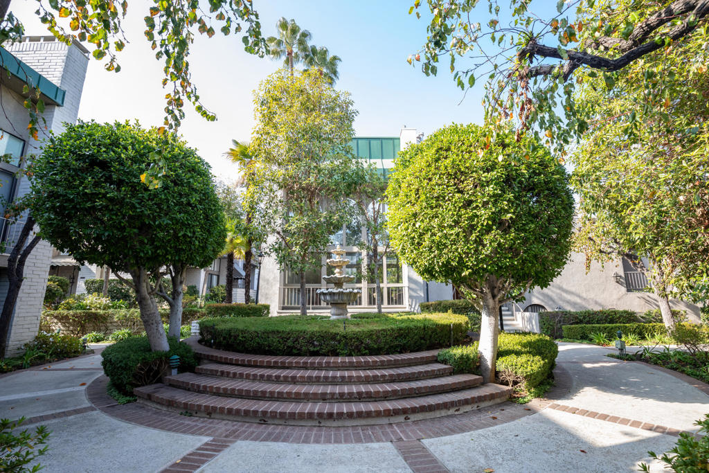 Resort-style living without leaving your home! Welcome to the coveted Encino Spa East gated community, where you can enjoy amenities such as two indoor spas, a fitness room, a large recreation space for private parties, separate male & female saunas and locker rooms, and a huge sparkling pool. That's just the beginning. Located in one of the most desirable areas of this lushly landscaped complex, this INTERIOR townhouse welcomes you with a grand double door entry opening into 2,075 sqft of luxury living. The large living and dining areas are accentuated by dramatic high ceilings throughout with custom crown molding, custom iron railings and custom marble-like flooring. The kitchen has been gorgeously remodeled with granite counter tops and custom cabinetry and the newly remodeled powder room is an art-deco lover's dream. Upstairs you will find a luxurious master retreat complete with an en-suite bathroom and therapeutic jet-tub, a large walk in closet and separate make-up area. With more storage space than any shopaholic could fill, a private attached 2-car garage, and a large patio with even more extra storage, you won't find a better townhome, right in the heart of Encino!