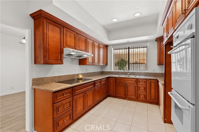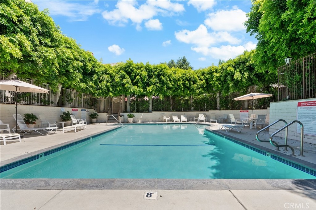 Welcome home, where your HOA covers Water, Trash, and Earthquake insurance! This One Of A Kind single level 1,800 sqft End Unit offers 2 bedrooms and 2 bathrooms along with a private patio that offers 900 sqft that is all yours! As you step inside, you are greeted by an open concept living space adorned with natural light that pours in through large windows, highlighting the beautiful laminate floors. The spacious living room flows seamlessly into the dining area, creating an inviting atmosphere perfect for both relaxation and entertaining. The kitchen features white appliances, sleek granite countertops, and ample cabinetry for all your culinary needs. Retreat to the master suite, where you'll find a serene escape with a generous walk-in closet and a spa-like ensuite bathroom complete with a soaking tub and a separate glass-enclosed shower along with a private balcony. The additional bedroom provides space and a full bathroom. Step outside to your private courtyard, stunning patio area , an ideal space for morning coffee or al fresco dining, Yoga studio, picnic table and so many more possibilities. The meticulously maintained complex offers a host of amenities including a sparkling swimming pool, a well-equipped fitness center, a club house that can be used for baby showers or a large party that can host dozens. The lush landscaping provides a tranquil environment throughout the community. Conveniently located, this home is just moments away from the vibrant Ventura Boulevard, where you can enjoy an array of dining, shopping, and entertainment options. Experience the epitome of modern living at 5216 Yarmouth Ave Unit 101, a condo you won't want to miss!