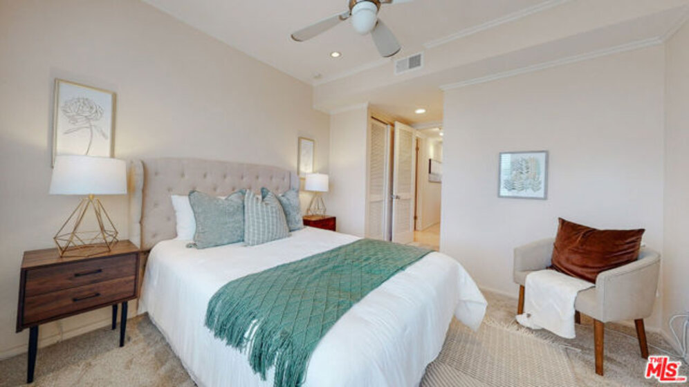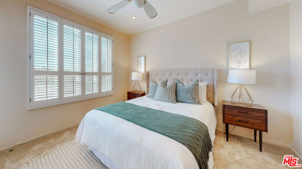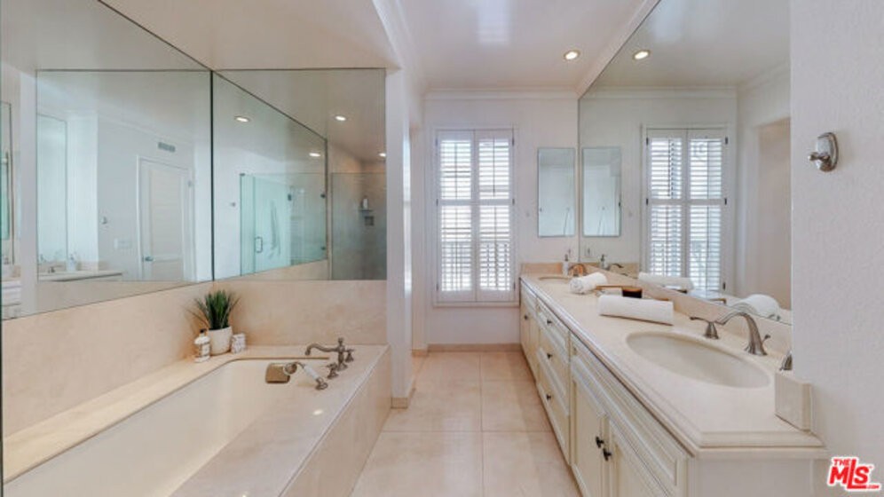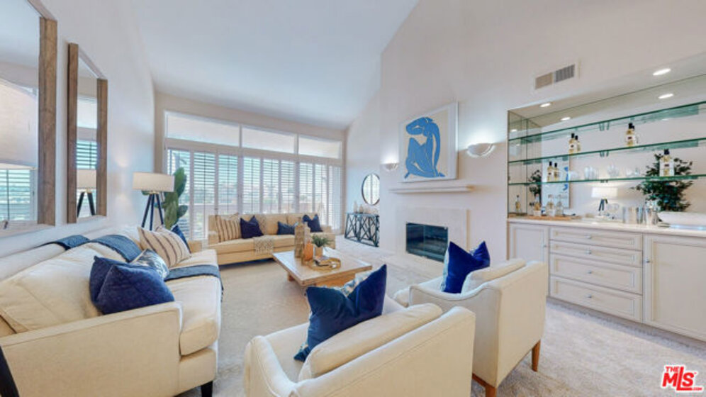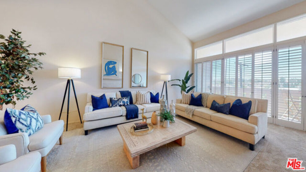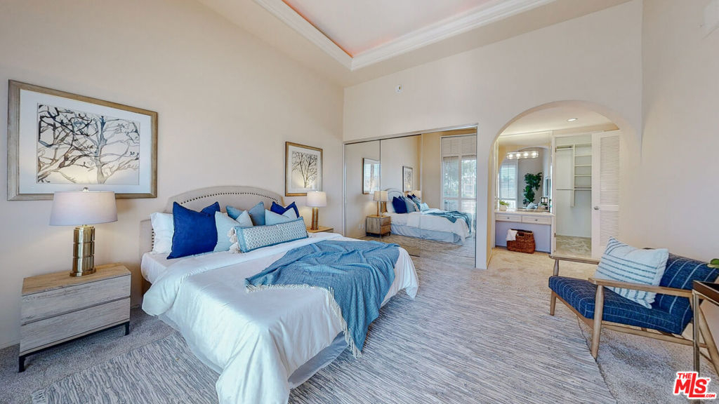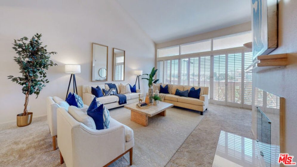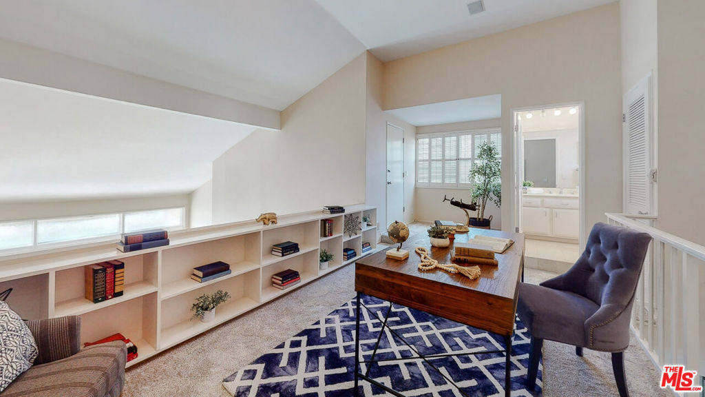 FABULOUS Top Floor Condo with TONS of Light. CORNER UNIT. Incredibly spacious, open floorplan with soaring ceilings. Living room has the feel of a Great Room with its expansive layout. lovely gas fireplace and plantation shuttered balcony. Primary bedroom has cathedral ceilings and wonderfully expansive footage plus 2 sets of closets! Ensuite is primary spa bath with dual sinks and a soaking tub. Second bedroom is lovely with direct access to the large balcony. Gourmet kitchen has a corner eating nook. Upstairs offers a great LOFT with its own bathroom, closet and a private rooftop deck. Laundry inside unit. Extra storage cage in security gated garage. Tandem parking. Close to Encino Commons. Boutiques and great restaurants. Just irresistible!