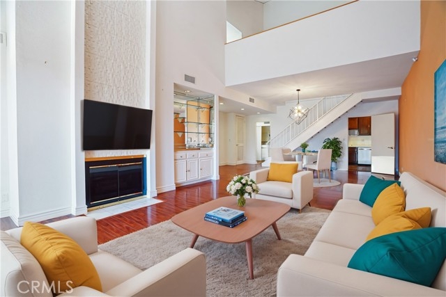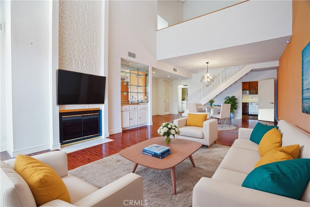 Welcome to luxurious living at Encino Spa South! This stunning 2-bedroom plus loft, 3-bathroom condo offers unparalleled comfort and style in the heart of Encino. Upon entering, you're greeted by soaring sky-high ceilings, complemented by recessed lights and a cozy fireplace, creating an inviting atmosphere. Gleaming wood floors lead you through the expansive living space, which features a wet bar and a private expansive-view balcony perfect for relaxing evenings. The gourmet kitchen is a chef's dream, boasting rich dark wood cabinets, white counters, and top-of-the-line appliances including a full-size washer and dryer. Your master suite is a sanctuary with cathedral ceilings, a sliding door to a balcony with breathtaking views, a dressing table, and dual closets (one walk-in, one mirrored). The en-suite bathroom pampers with a soaking tub, separate shower, and double sinks. The second bedroom offers generous space, a large closet, and balcony access, while its own private full bathroom ensures comfort and privacy for guests or family members. The versatile loft area upstairs includes another bathroom and leads to a huge rooftop deck, perfect for entertaining or enjoying panoramic views stretching for miles. This condo includes convenient underground parking with two tandem spaces. Outside, enjoy the lush tropical grounds featuring a sparkling pool, hot tub, sauna, gym, and a community room ideal for gatherings. Located just moments from the 101 freeway and Ventura Blvd, this home provides easy access to shopping, dining, award-winning schools, parks, and more. Don't miss the opportunity to experience luxury living at its finest in Encino Spa South. Schedule your private tour today!