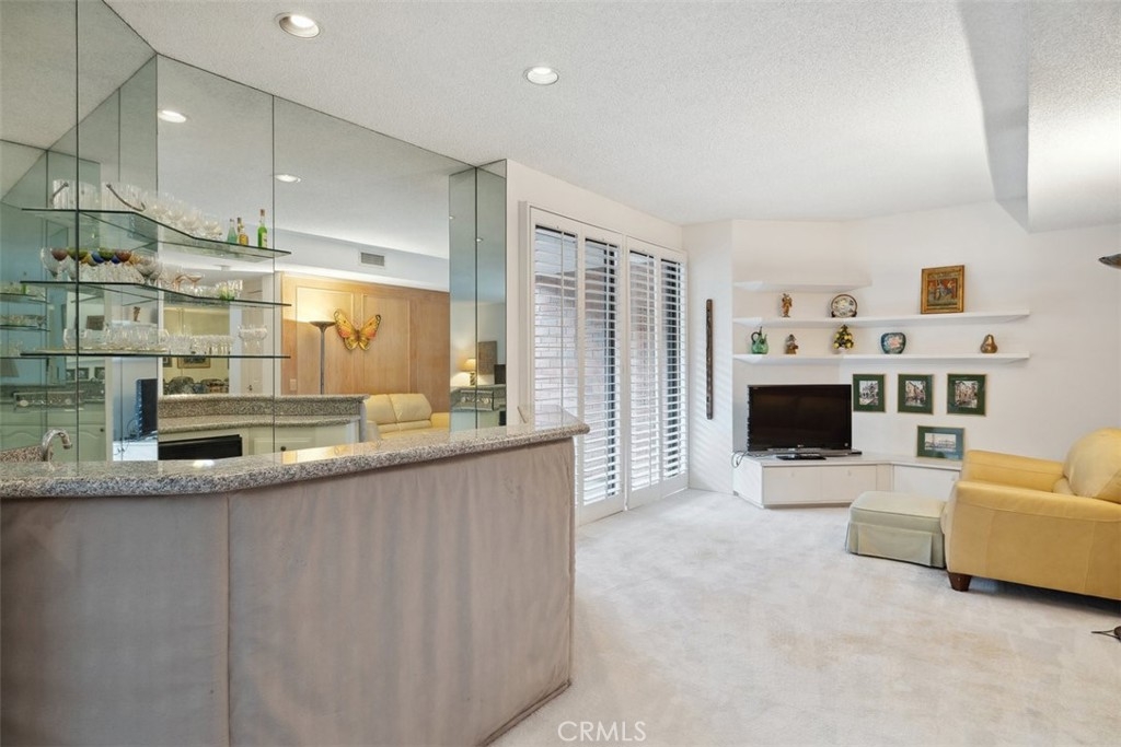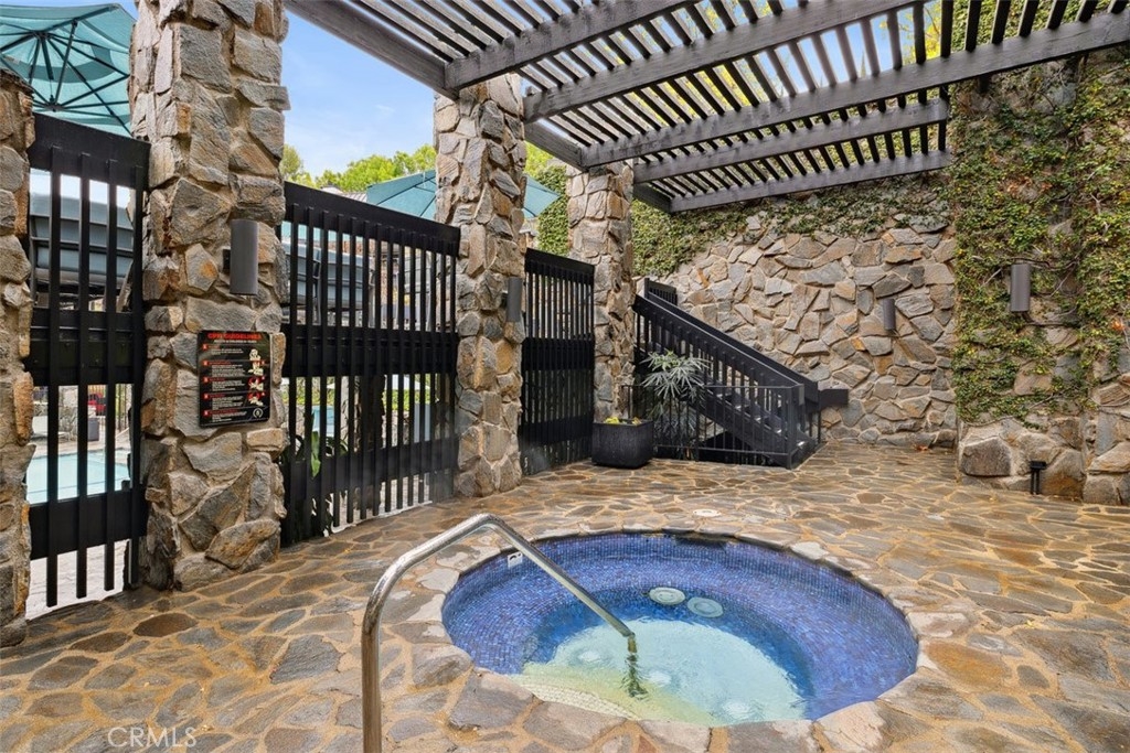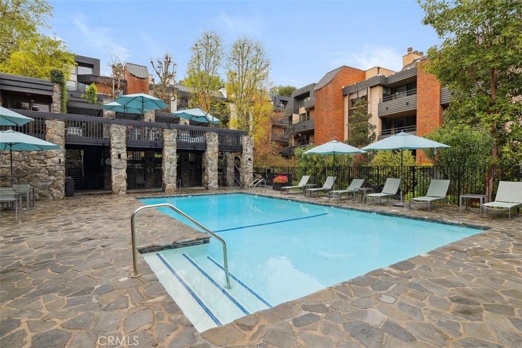 Discover this rarely available first-floor, single-level condominium with 2 bedrooms and 2.5 bathrooms with almost 2,300 square feet. The grand living room is bathed in natural light, courtesy of large windows that provide picturesque views and a bright, inviting atmosphere. Adjacent to the living area, you'll find a den that offers a versatile space that can be used as a home office, library, or additional guest area. The spacious primary suite is a true retreat, with an oversized walk-in closet, a cozy fireplace, and direct access to a delightful private balcony. The primary bath is complete with a double vanity, soaking tub, and separate shower. The well-appointed secondary bedroom has an en-suite bath and also grants access to the balcony, making it an ideal guest room. The formal dining room is perfect for large family gatherings or special occasions. Marble entryways and beautiful shutters in most rooms accentuate the elegance of this residence. Step outside to enjoy the lushly landscaped grounds, featuring running fountains, c reeks and waterfalls. As part of a vibrant community, you will enjoy exceptional amenities including a sparkling pool, rejuvenating spa, recreation room and both pickleball and tennis courts. Enjoy approximately 900 square feet of additional open-air living space on the open outdoor patio. 24-hour front gate security and on-site office for your convenience. Located just minutes from fabulous shops and dining, and with easy access to Beverly Hills, Downtown LA, and the beaches. Don't miss your chance to own this exceptional condominium that seamlessly blends luxury, comfort and security in one of Encino's most sought-after locations.