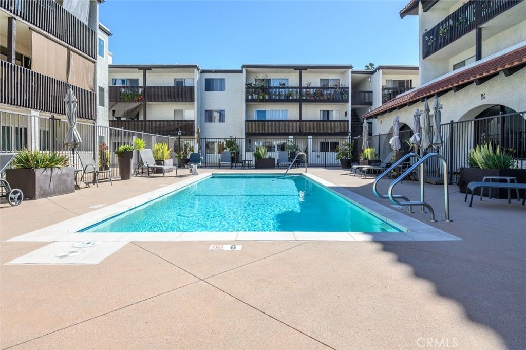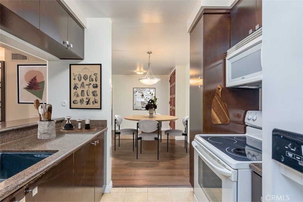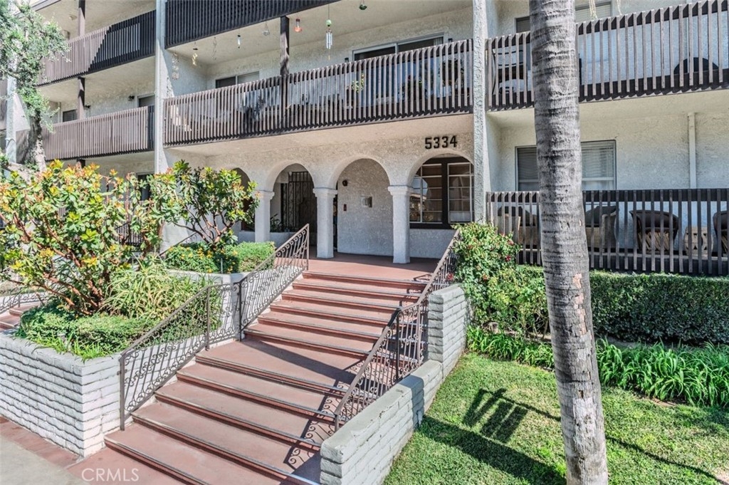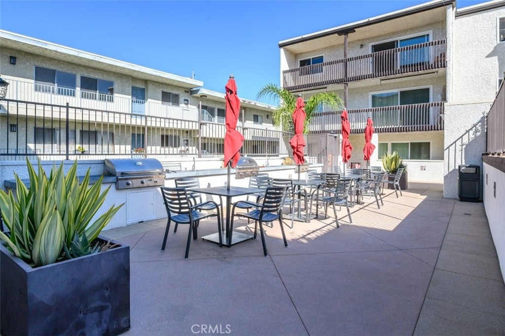 Modern elegance! Top floor, one bedroom condo in gated, security building. Updated kitchen with all appliances included. Cabinets with convenient pull-out shelves, granite countertops and plenty of prep room. Pass-through from kitchen opens to breakfast bar. Fireplace and built-in entertainment center in living room create a comfortable, relaxing space and sliders lead to an expansive screened-in balcony with gorgeous sunset views. Recessed lighting throughout. Remodeled bath features luxurious oversized shower with built-in seat. Separate vanity has granite countertops and glass vessel sink. Awesome array of community amenities include pool and spa, BBQs, rec room, billiard table and a clubhouse available to rent. Small pets under 25 pounds are welcome. HOA includes **EQ insurance**, grounds maintenance and hot & cold water. Community laundry and two trash chutes on each floor. Gated subterranean parking with two tandem spaces and elevator access. Special assessment will be paid by seller at close. Located so close to that famous boulevard that when your windows are open you can practically catch the aroma of nearby fine dining.