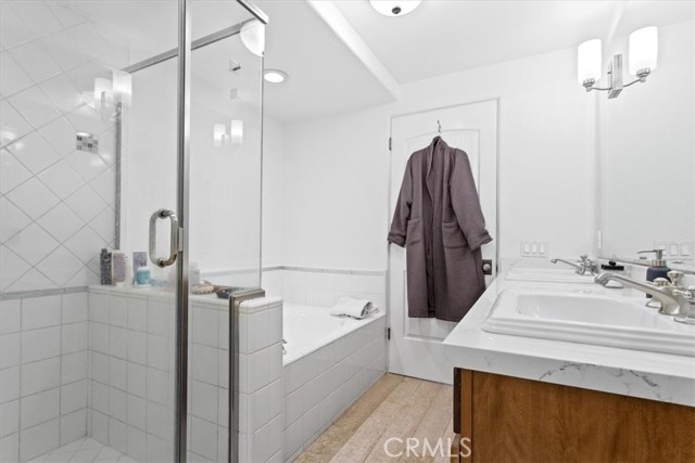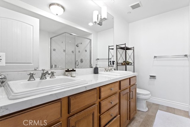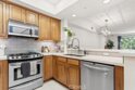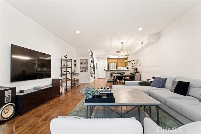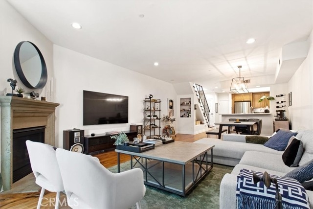 Introducing a rare opportunity to own a townhome-style condo in the heart of Encino. This 2 bed/2.5 bath unit provides 1410 square feet of modern living space and abundance of natural light. The downstairs living area features an open floorplan with high ceilings, hardwood flooring, and recessed lighting. Gorgeous skylight shining throughout the home. A charming gas fireplace adds warmth and character, leading to a balcony ideal for relaxing after a long day. The kitchen is complete with updated backsplash tiles, new kitchen faucet, quartz countertops, a breakfast bar, and stainless-steel appliances. As you head upstairs, the primary bedroom welcomes you with a spacious walk-in closet, private balcony, and a luxurious bathroom with dual sinks, a large bathtub, and a separate shower. The guest bedroom offers comfort and privacy with its own finished closet and private bathroom. This lovely unit also includes central heating and air, underground secured parking with two side by side parking spaces, ample guest parking, and a large secured storage space in the garage area! HOA dues cover water and building maintenance/landscaping. Built in 2006, this Spanish-style complex is conveniently located just minutes away from Ventura Blvd, numerous shopping centers, Trader Joe's, dog park, and farmers market. Transportation access to the 101 freeway and Metro Orange Line is also in close proximity.