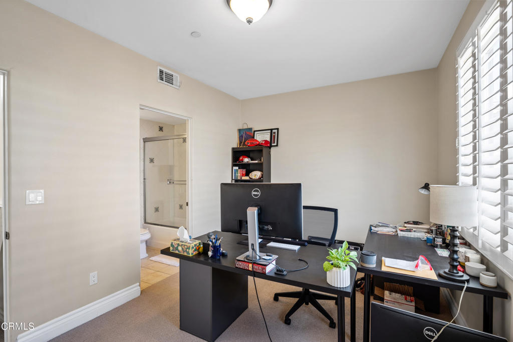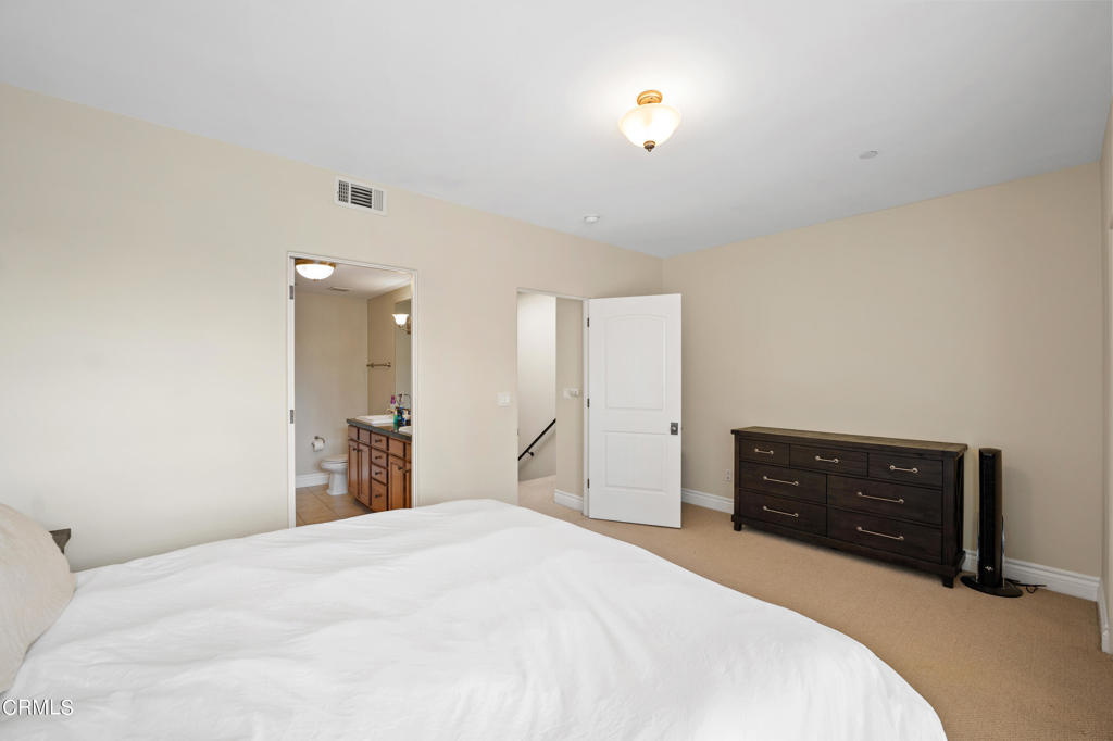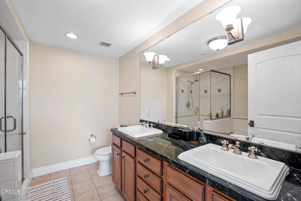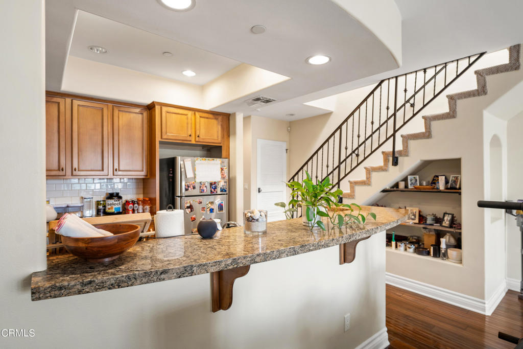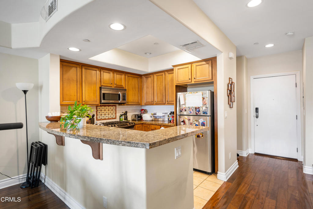 Welcome to this turn-key two bedroom, two and half bathroom townhome-style condo nestled within a gated Spanish-style complex in Encino. Built in 2006, this 1,300 square foot unit is a haven of elegance and tranquility. As you enter the complex, you're greeted by a courtyard adorned with a serene fountain, setting the tone for the refined atmosphere within. Natural light pours in through large, dual-pane windows, sliding doors, and a skylight, illuminating the stylish interior. The downstairs living area boasts an open-plan layout, featuring a spacious living room adorned with high ceilings, walnut hardwood floors, and recessed lighting. A charming gas fireplace adds warmth and character, leading to a large balcony ideal for unwinding or hosting guests. The seamless flow continues into the well-appointed kitchen, complete with granite countertops, a breakfast bar, and stainless-steel appliances. A powder room with a pedestal sink and in-unit, stacked washer/dryer provide added convenience. Upstairs, privacy is paramount with two carpeted bedroom en-suites. The primary bedroom is a sanctuary unto itself, boasting a generous custom-finished closet, private balcony, and a luxurious bathroom with dual sinks, granite counters, a large bathtub, and a separate shower. The guest bedroom offers a comfortable retreat with its own finished closet and private bathroom featuring granite counters and recessed lighting. Additional features include central heating and air conditioning, underground secured parking with two reserved single spots, ample guest parking, and a secured storage space in the garage area. Perfectly situated, this home is just moments away from shopping, dining, the Sepulveda Basin Recreation Area, a dog park, farmers market, and convenient freeway and Metro Orange Line access. Don't miss out on this rare opportunity to experience comfortable and stylish living in the heart of Encino. Make this home yours today!
