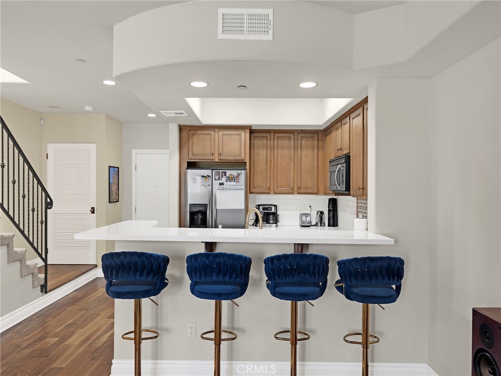 Welcome to 5753 White Oak Ave #3 – a beautifully updated turnkey townhome nestled in a quiet, well-maintained complex in the vibrant heart of Encino. This spacious 2-bedroom, 2.5-bath residence offers a seamless blend of modern amenities and classic charm, perfect for comfortable everyday living and stylish entertaining. Step into a warm and inviting living room featuring elegant hardwood floors, a cozy gas fireplace, and expansive sliding glass doors that open to a private balcony – perfect for enjoying morning coffee or an evening breeze. The kitchen is a chef’s dream – equipped with stainless steel appliances, granite countertops, a designer tile backsplash, and ample cabinet space. Whether you’re cooking a casual meal or hosting guests, this kitchen offers both function and flair. Upstairs, the generously sized bedrooms provide a peaceful retreat. The primary suite features a spa-like bathroom with dual sinks, a soaking tub, and elegant finishes throughout. Additional highlights include a convenient in-unit washer and dryer, recessed lighting, and two parking spaces. Located just moments from Ventura Blvd, you’ll enjoy easy access to shopping, dining, parks, and major freeways. This turnkey home offers the best of Encino living in a beautifully maintained community.