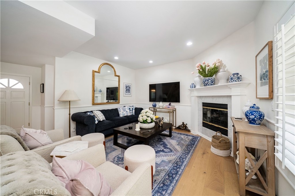 Charming townhome in a gated community in the heart of Encino- featuring 2 BR + 2.5 BA in approx. 1,800 sqft, remodeled/updated in 2016. Spacious living room features fireplace with mantle and marble surround. Dining area opens to remodeled kitchen with stainless-steel appliances and Caesar stone countertops. Spacious primary suite features pitched ceiling, fireplace, walk-in closet, and remodeled bath with Carrera marble counter, vanity, soaking tub, and herringbone marble tilework. Home is completed with engineered hardwood flooring, accent trim work/designer tile, in unit laundry hook-ups, and cozy patio. Amenities include pool/spa, gym, sauna, club house, water/trash/earthquake insurance, and more!