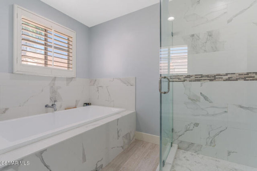 Welcome to this very desirable guard gated Four Oaks Townhome in Encino which is a centrally located end unit. Proceed through its double door entry to the Living or Great room which has a central cozy fireplace, a bar area, recess lighting, and a French window door to the patio. Adjacent is the dining area and kitchen featuring stainless steel appliances; ample cabinetry; attractive tile countertops; and recess lighting. On the ground floor off the entry there is a convenient guest bathroom and direct interior access to and from the 2-car garage. Tour upstairs by way of the open ''U-shaped'' staircase illuminated by its decorative accent windows leading to the primary bedroom and second ensuite, each with vaulted ceilings and windows with plantation shutters. The primary bedroom has a romantic fireplace and two spacious walk-in closets. The generously remodeled primary bathroom offers large tile flooring; double sinks; and a separate shower, tub and toilet room. The second ensuite also has a large walk-in closet, 2 additional closets, and full bathroom. The community amenities include well-maintained landscaped grounds; use of attractive pavers for some driveways and walkways; and a common pool, spa, his and her saunas, gym, and club house. Other features and amenities: plantation shutters; included with the HOA are 24-hour security personnel and high-tech surveillance systems; close to restaurants, schools, parks, shopping, recreation, and easy freeway access.